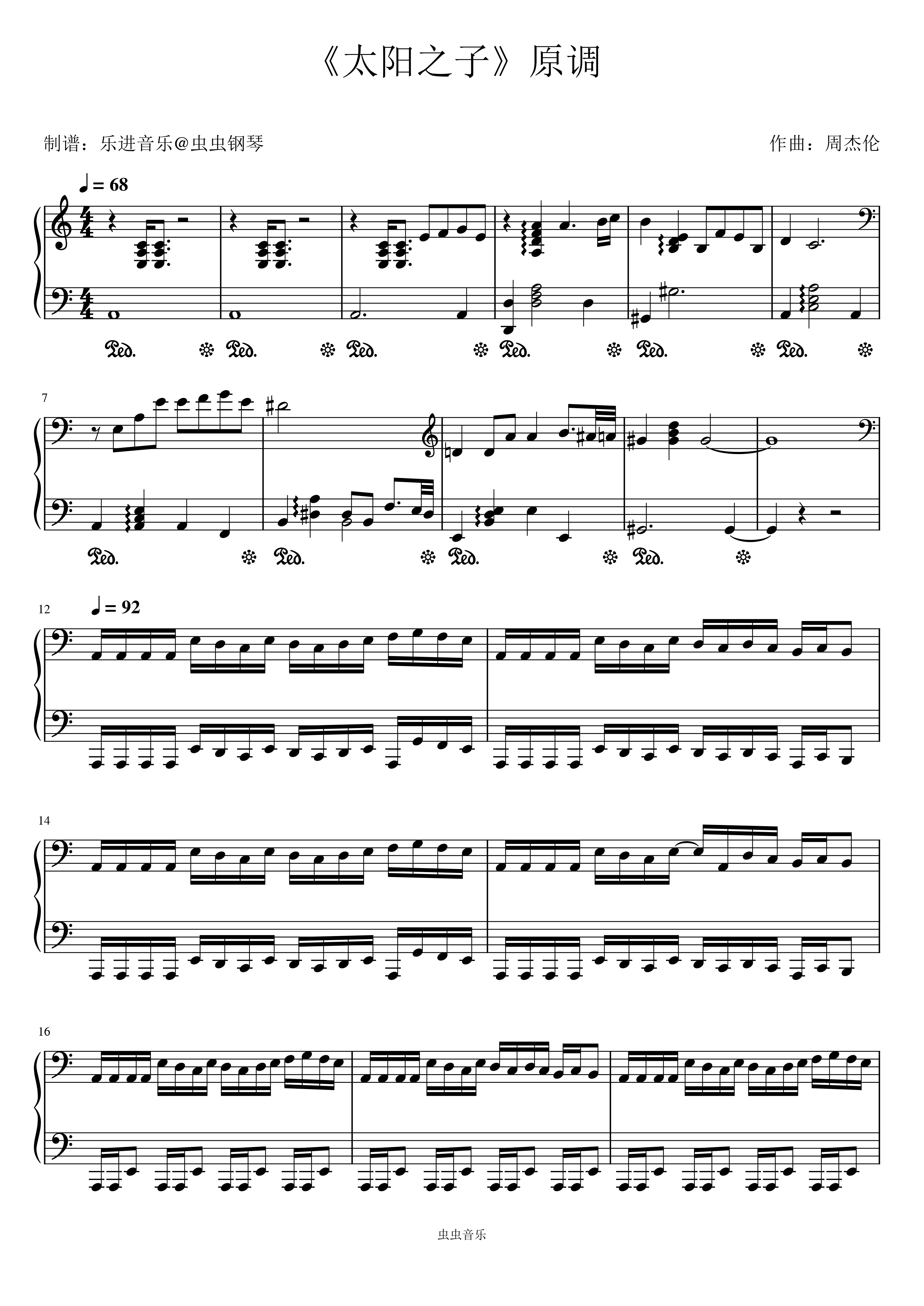 • 太阳月亮钢琴简谱 C调 数字双手 王乐达
