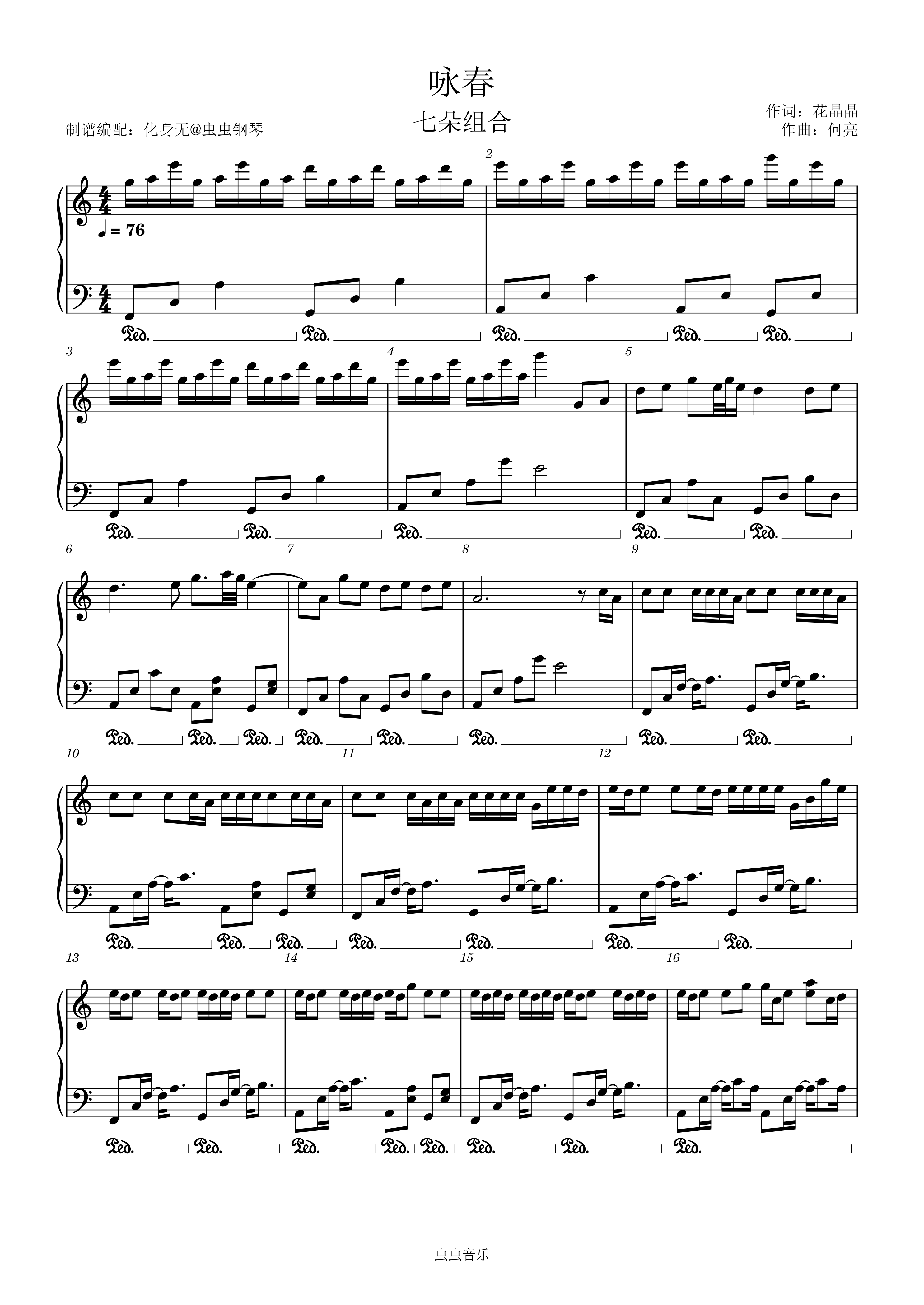 钢琴谱:咏春 原调独奏版 化身无编配