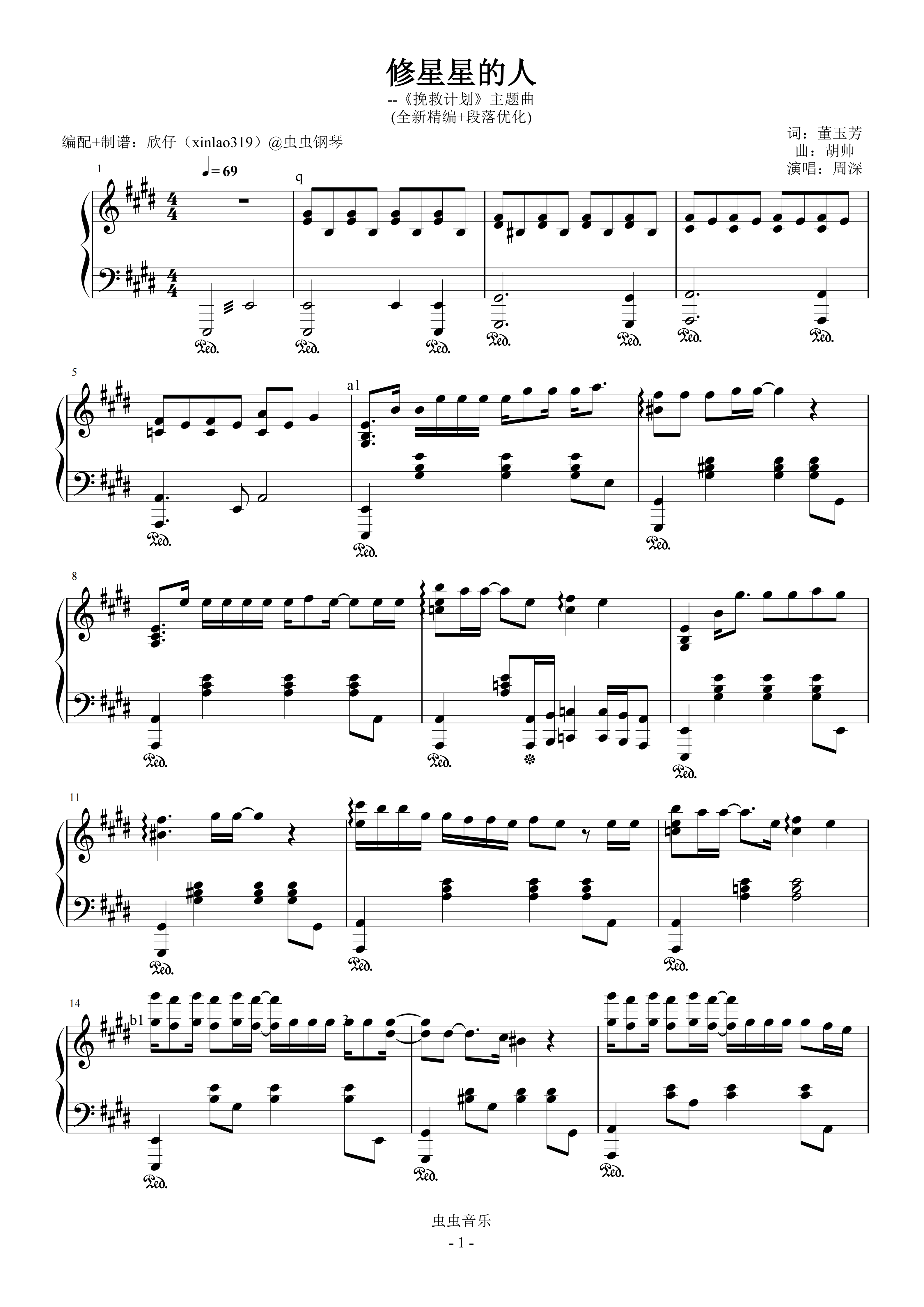 钢琴谱:修星星的人(原调E、周深《挽救计划》主题曲、段落优化)
