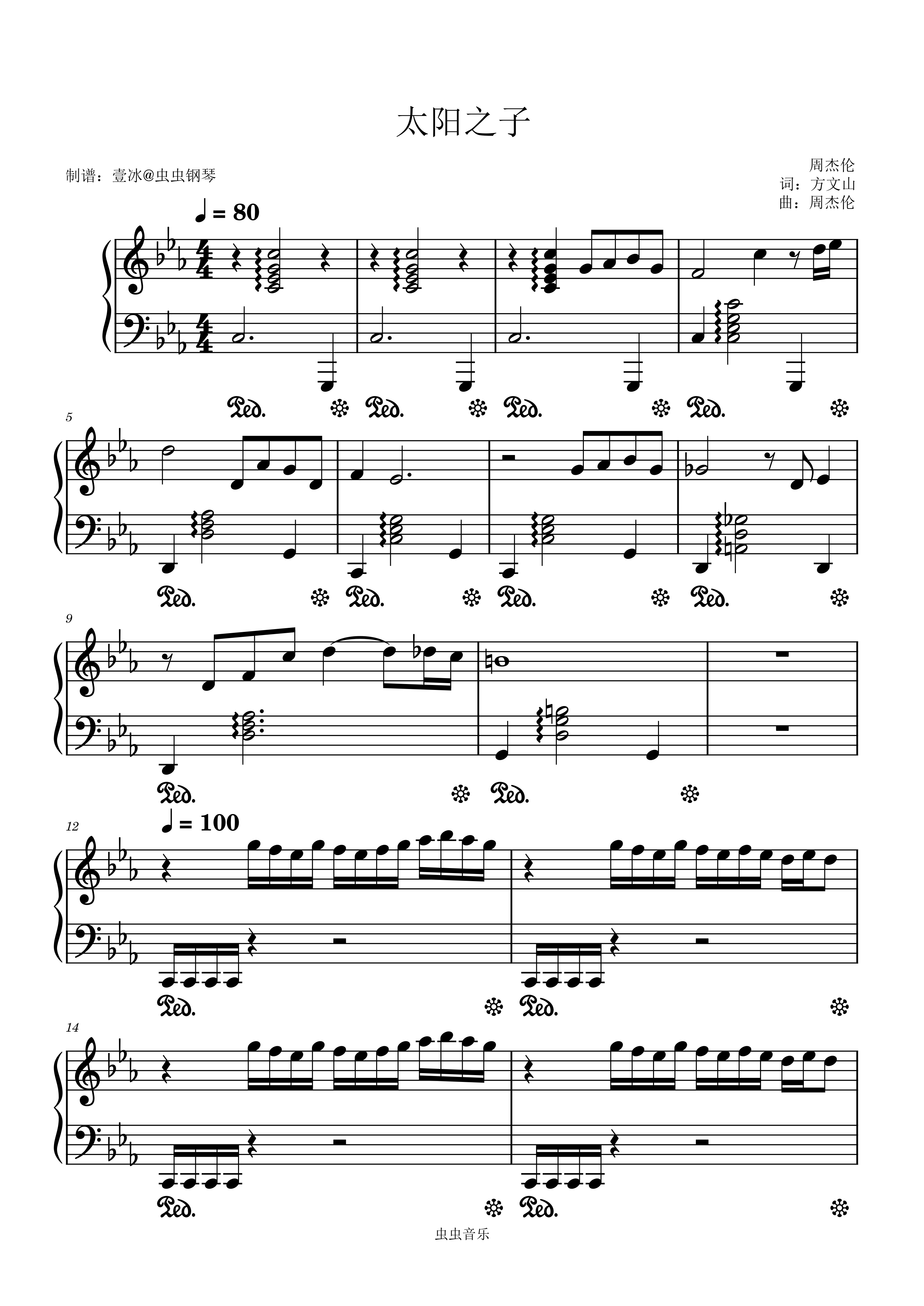 • 太阳月亮钢琴简谱 C调 数字双手 王乐达