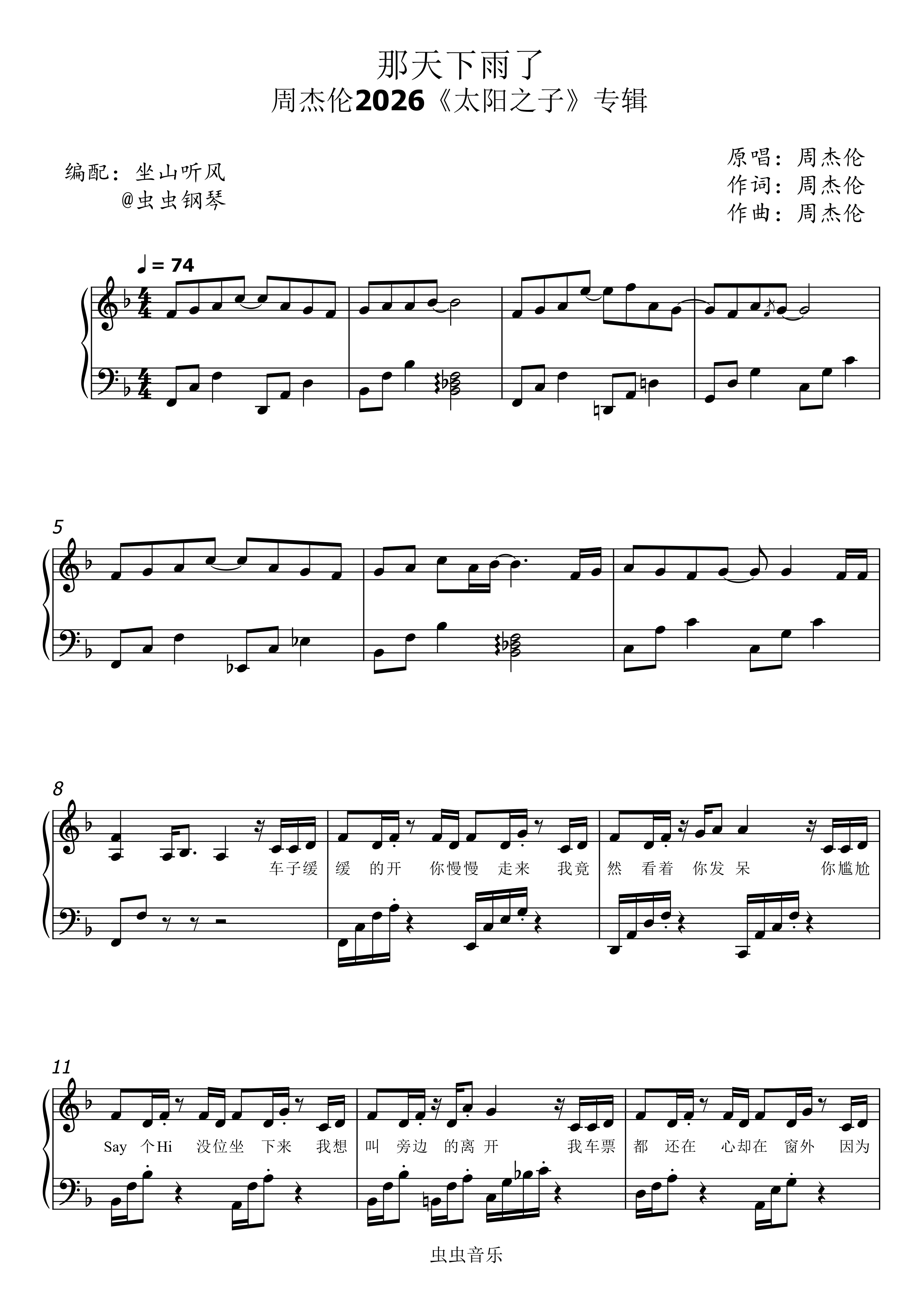 钢琴谱:那天下雨了——周杰伦2026《太阳之子》专辑系列【带歌词】