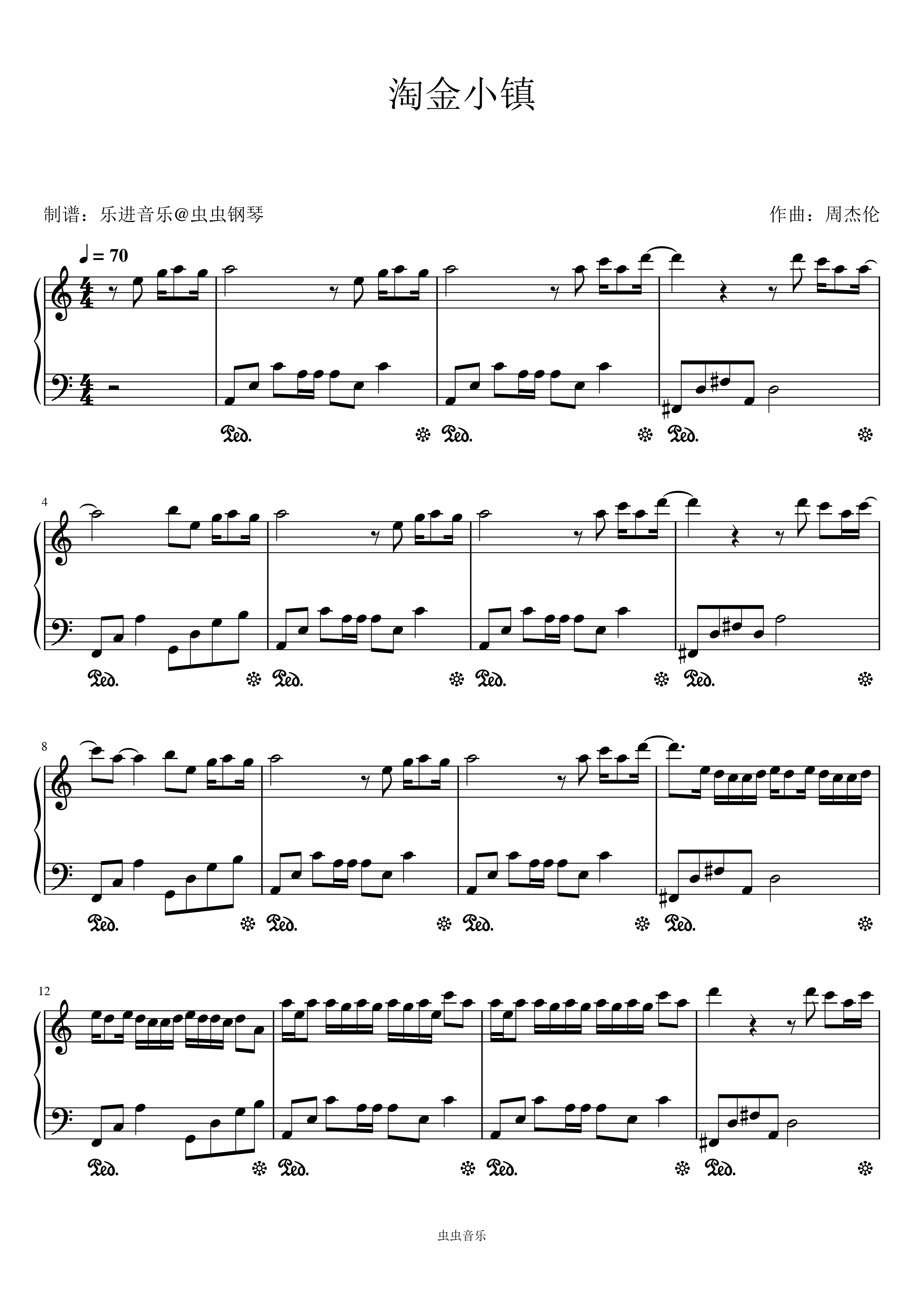 钢琴谱:《淘金小镇》C调简易版
