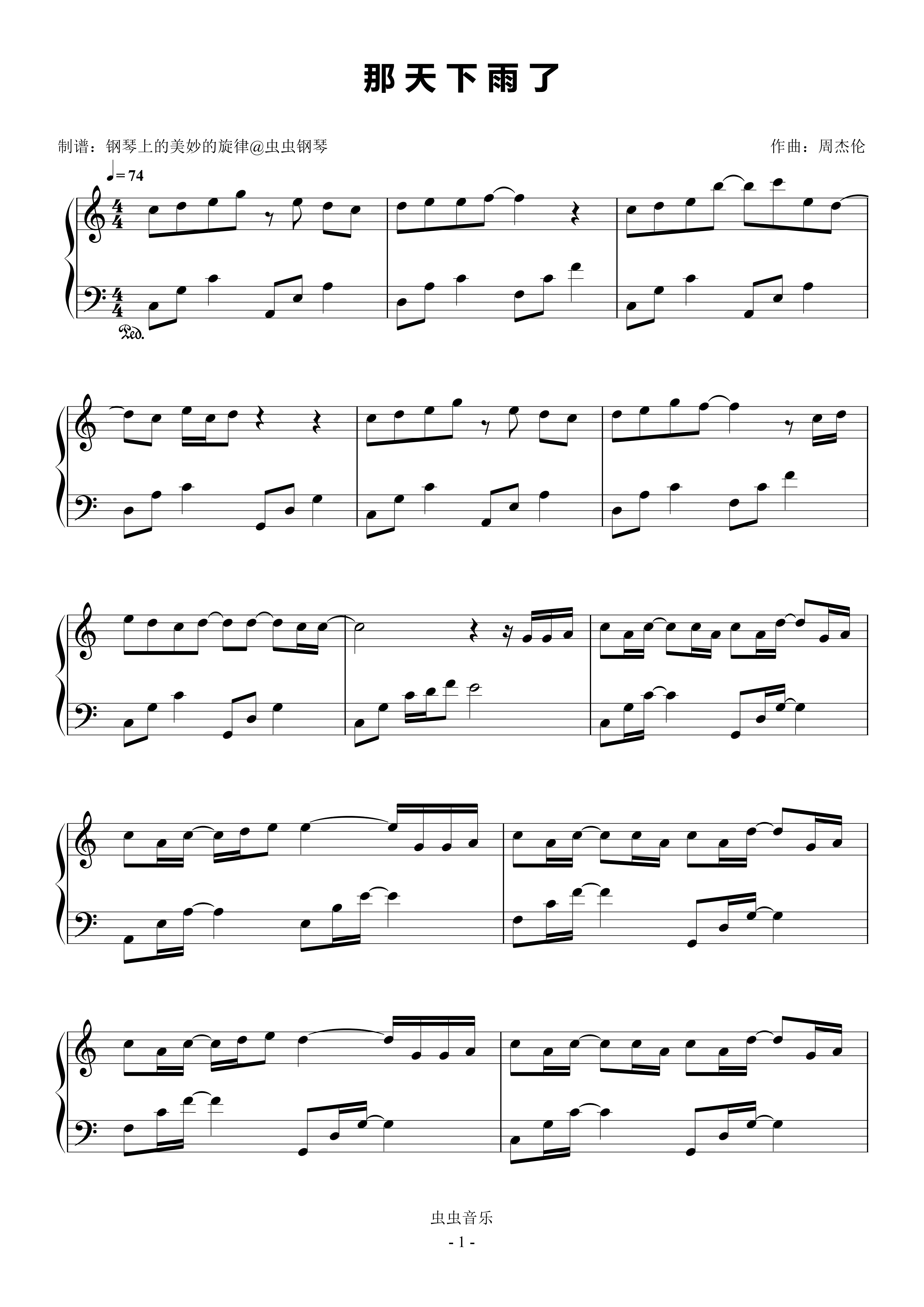 钢琴谱:那天下雨了 C调简易版 周杰伦 太阳之子