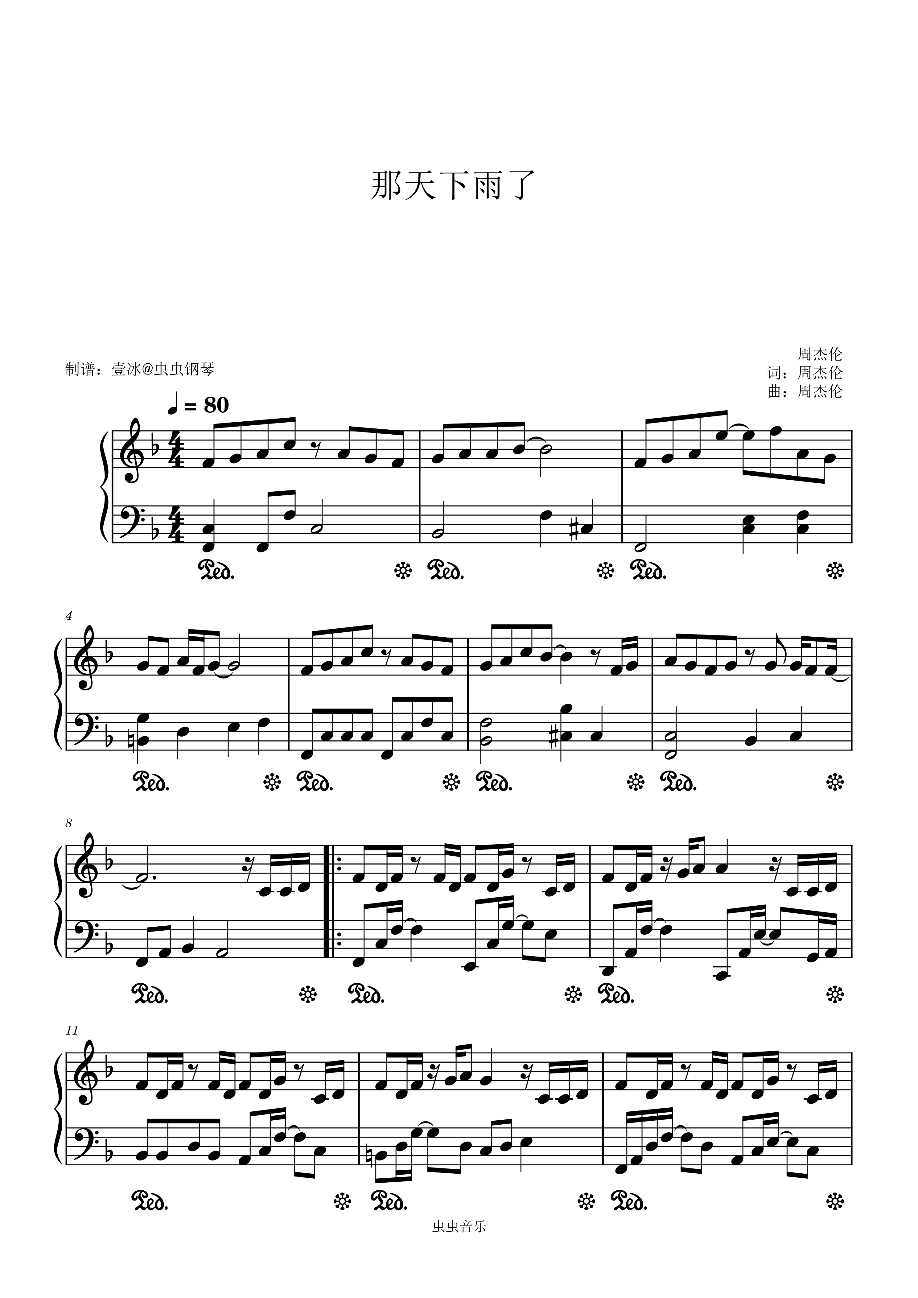 钢琴谱:那天下雨了 - 周杰伦 原调