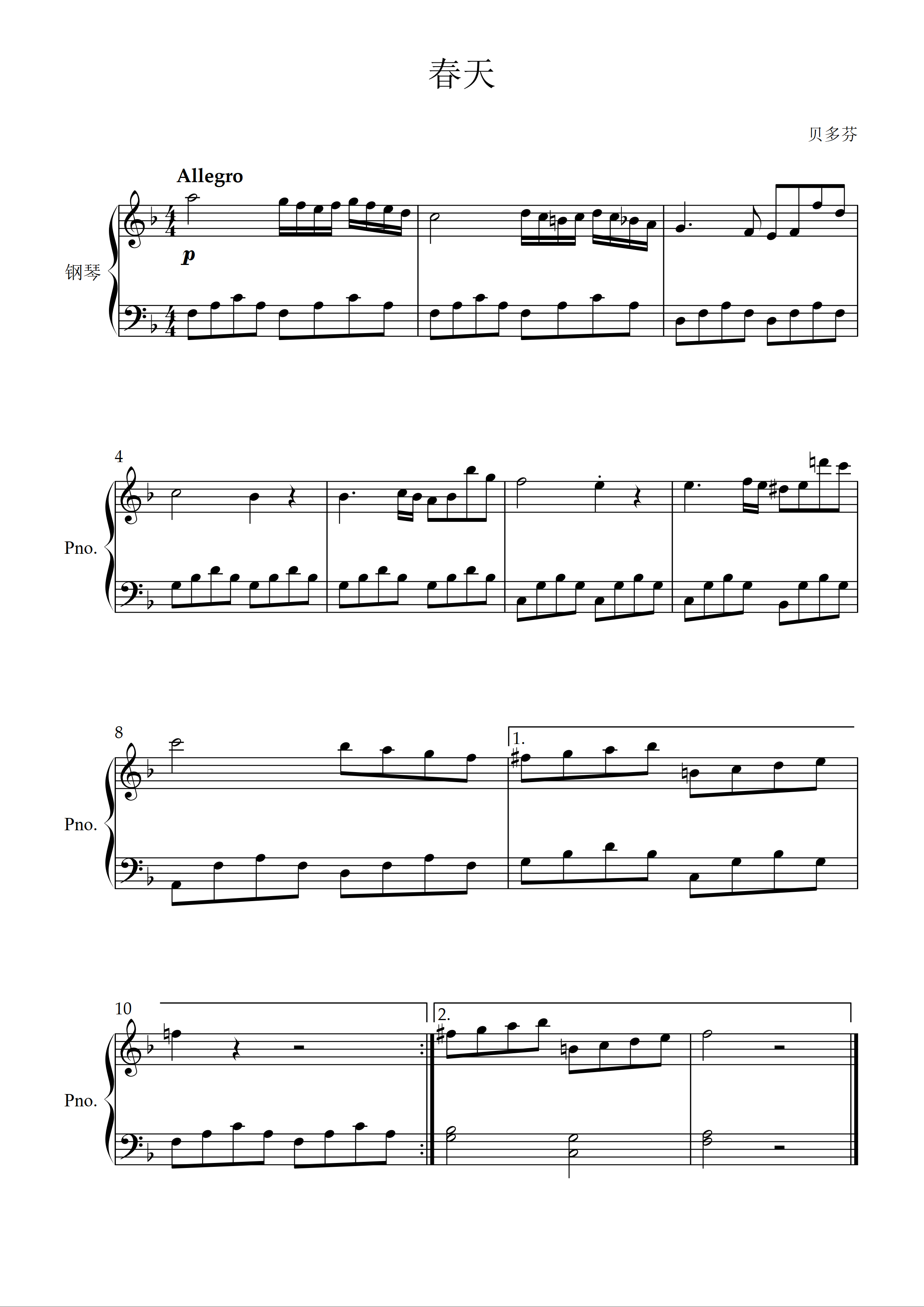• 10-5. 渴望春天钢琴简谱 F调 数字双手