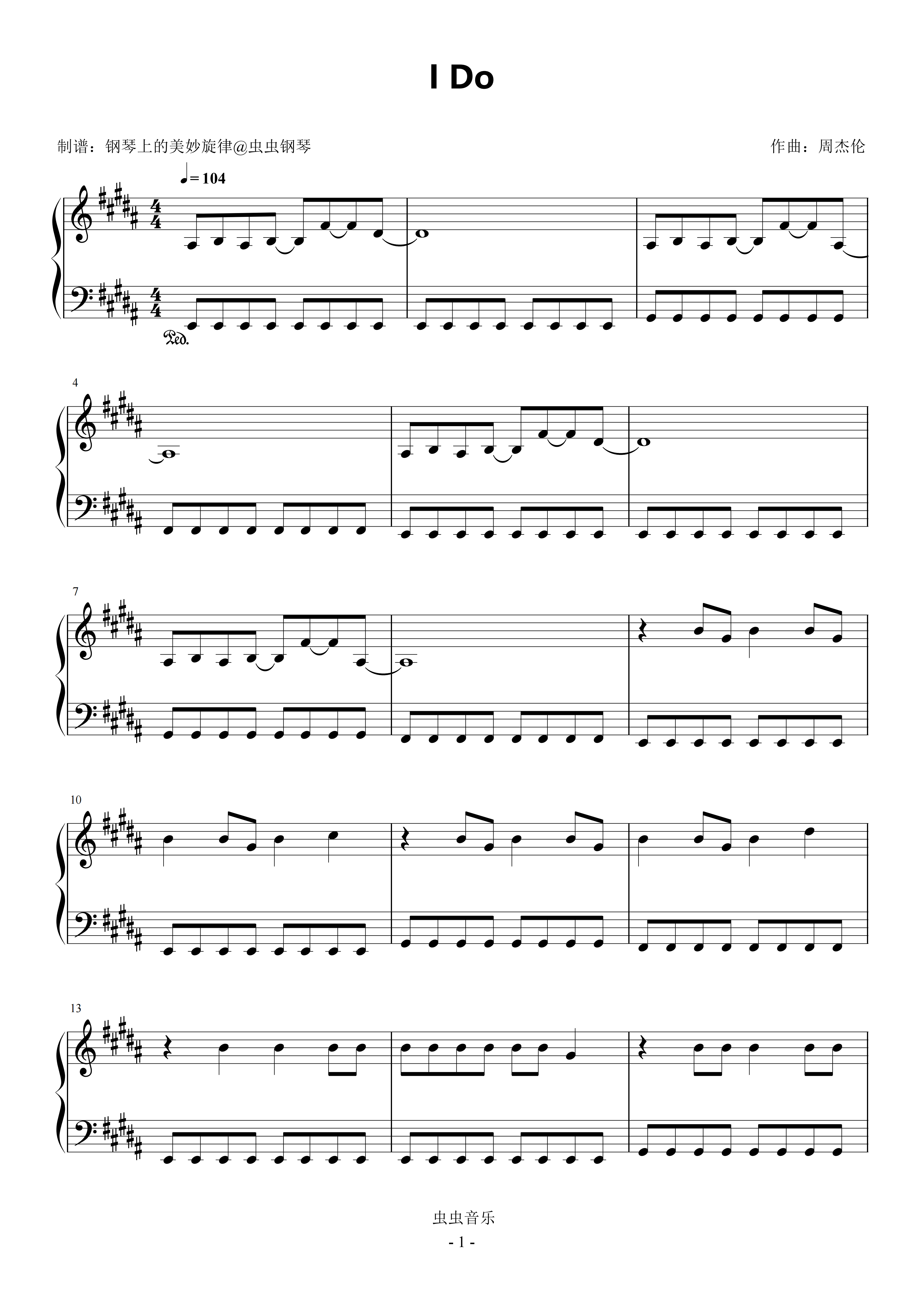 钢琴谱:I Do 原调简易版 周杰伦