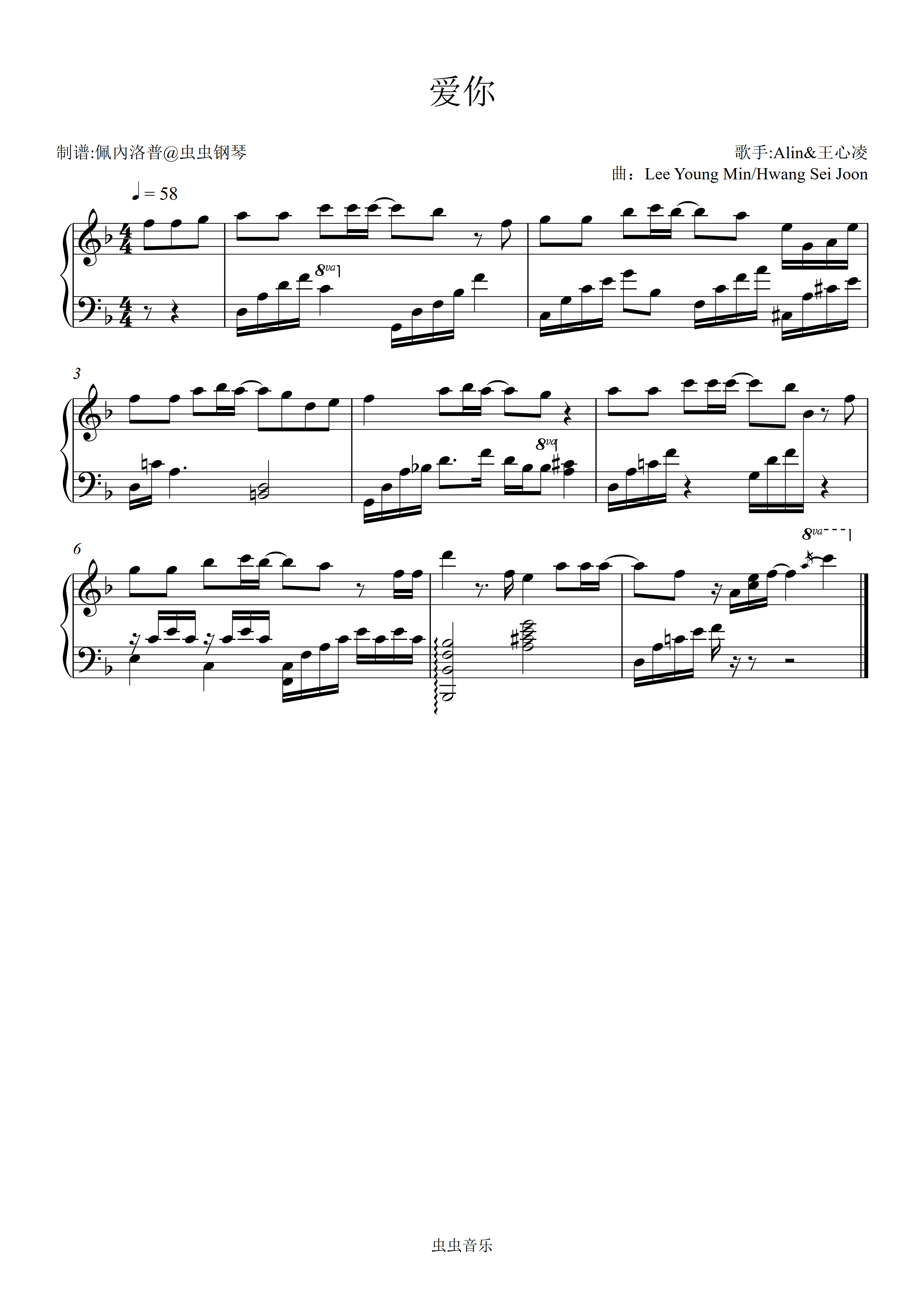钢琴谱:爱你-Alin&王心凌演唱会悲伤版