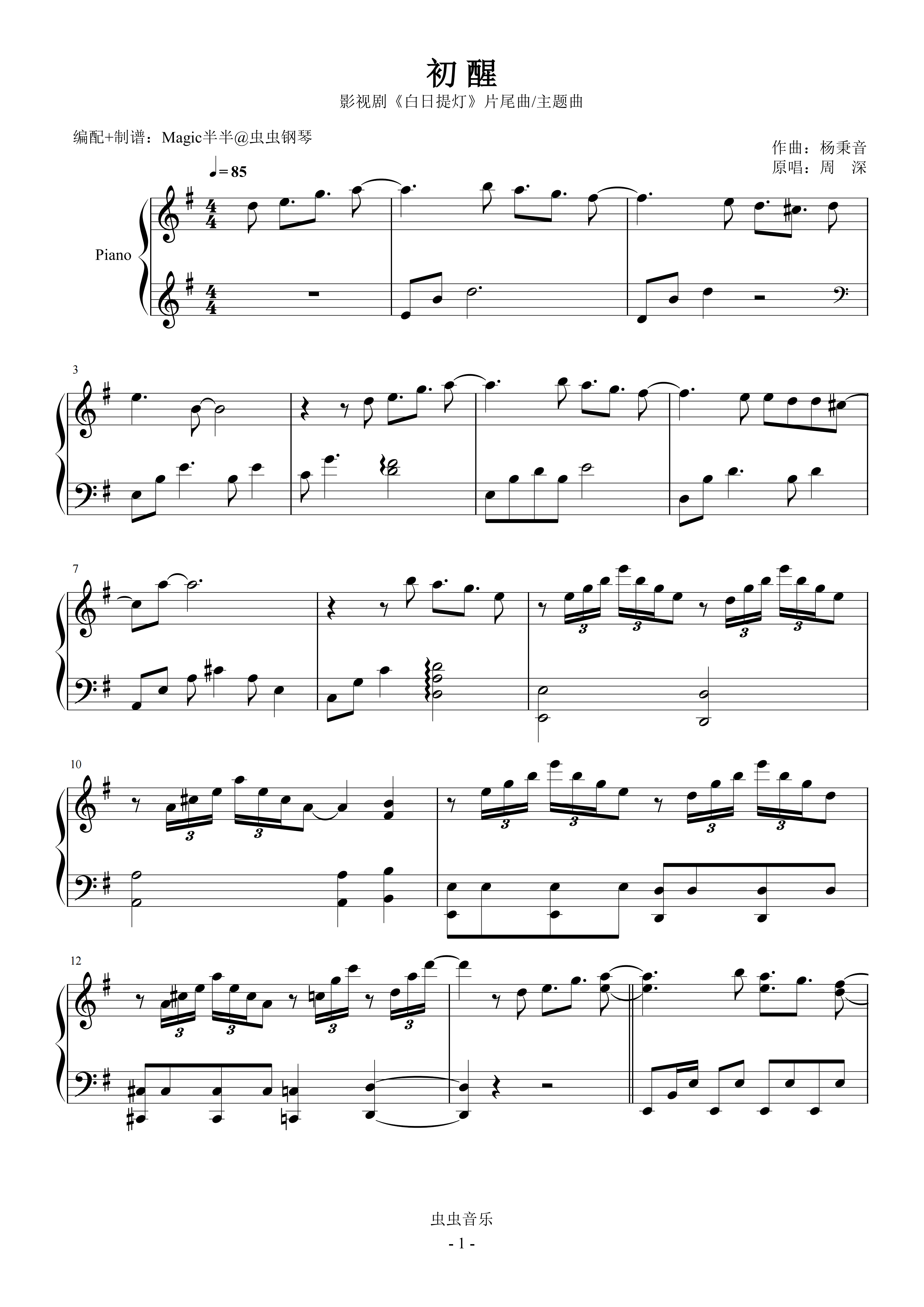 钢琴谱:初醒(实用精华版/独奏G) <白日提灯>片尾曲/主题曲