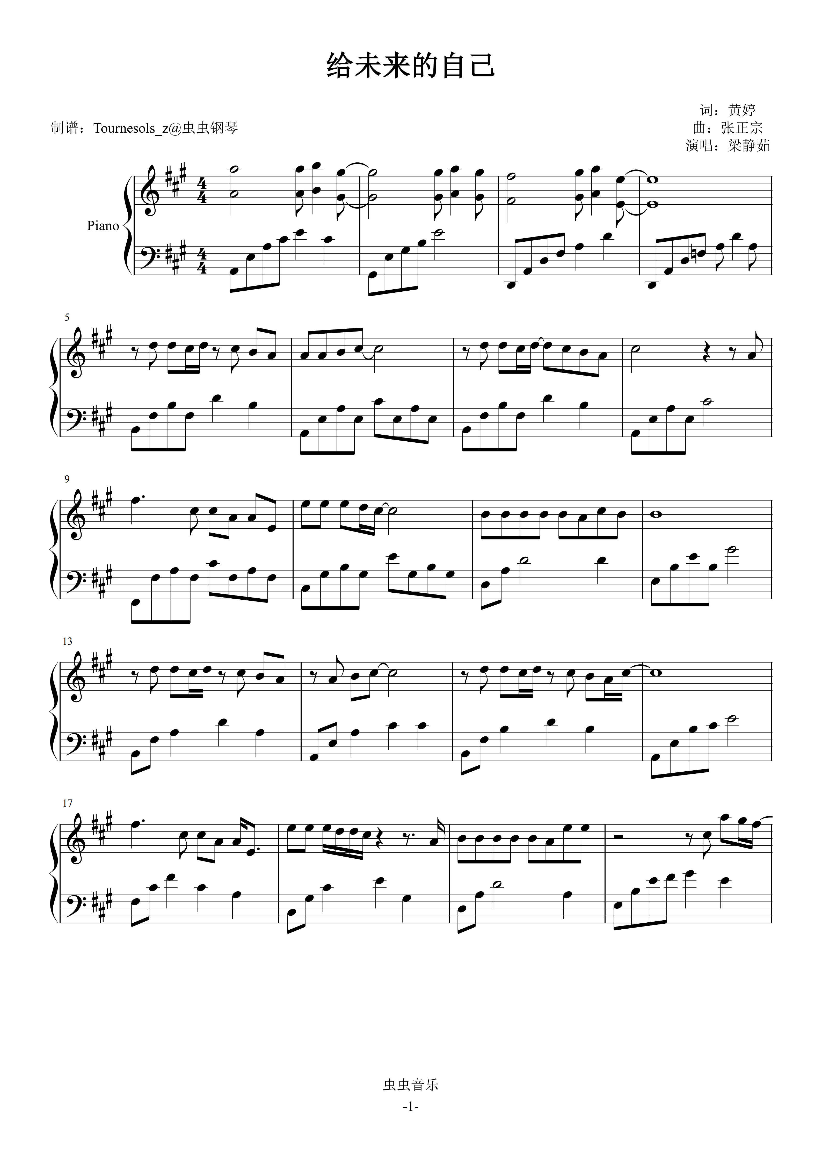 • 最好的未来钢琴简谱 C#调 数字双手 崔恕