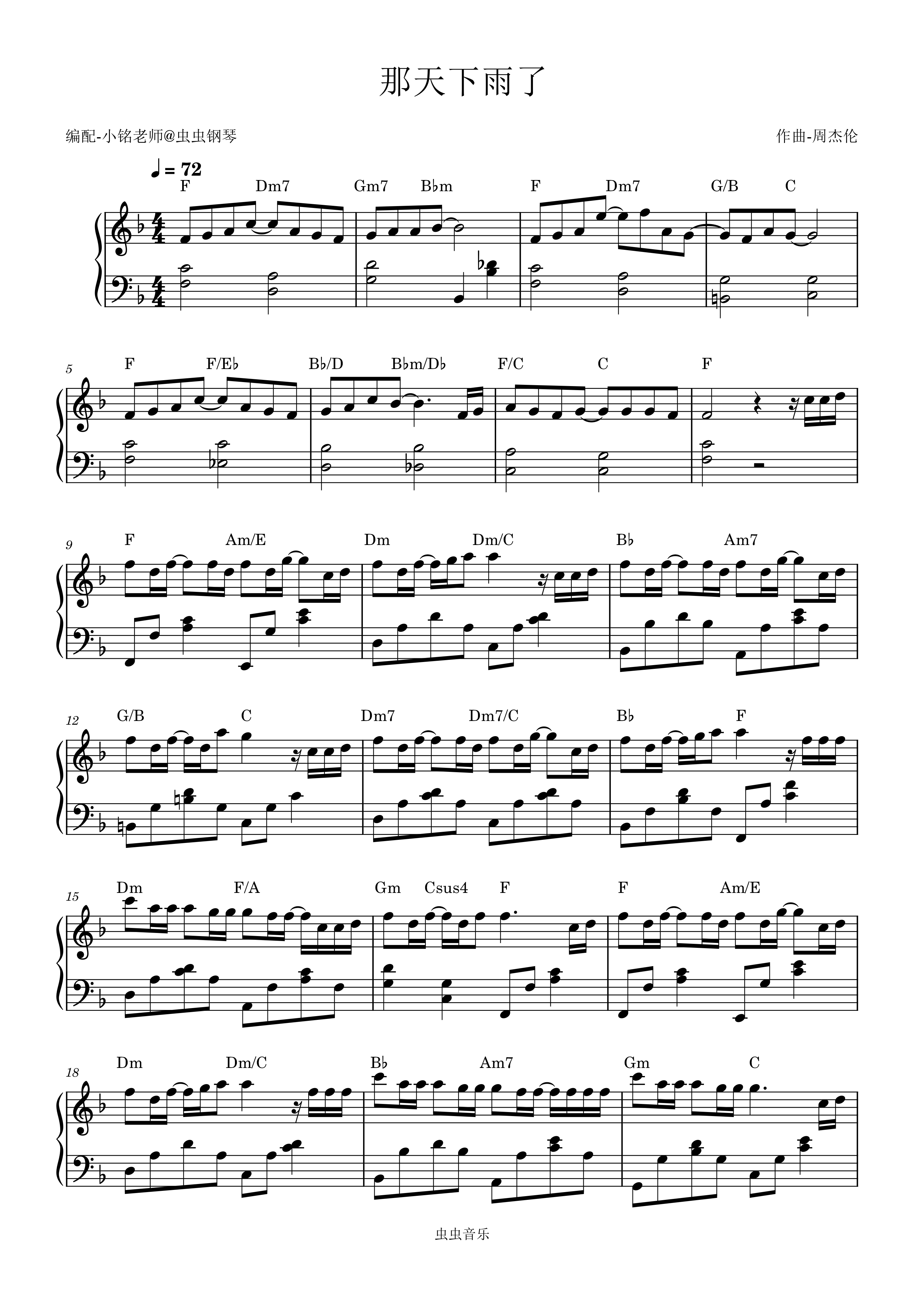 钢琴谱:那天下雨了【原调】