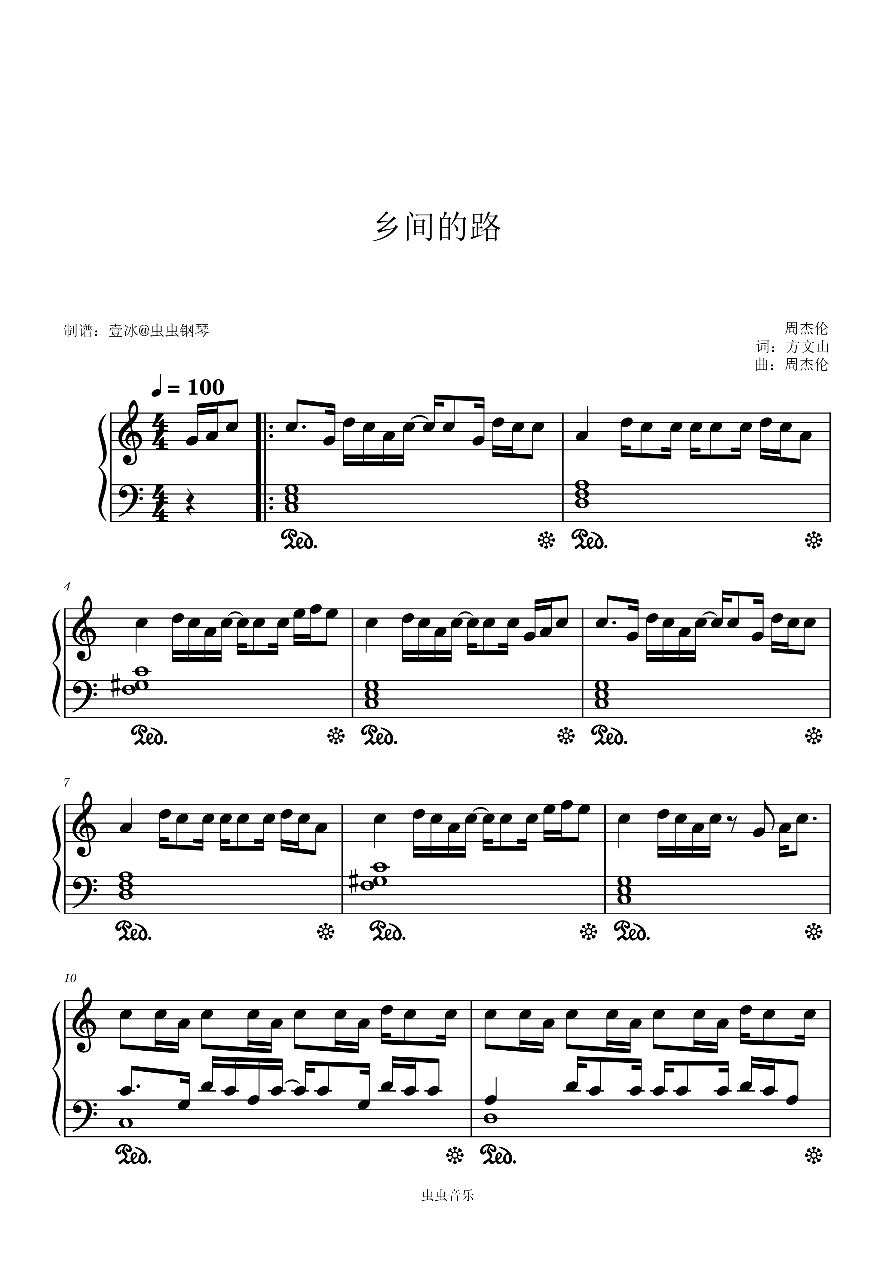 • 乡间的小路钢琴简谱 C调 数字双手 叶佳修