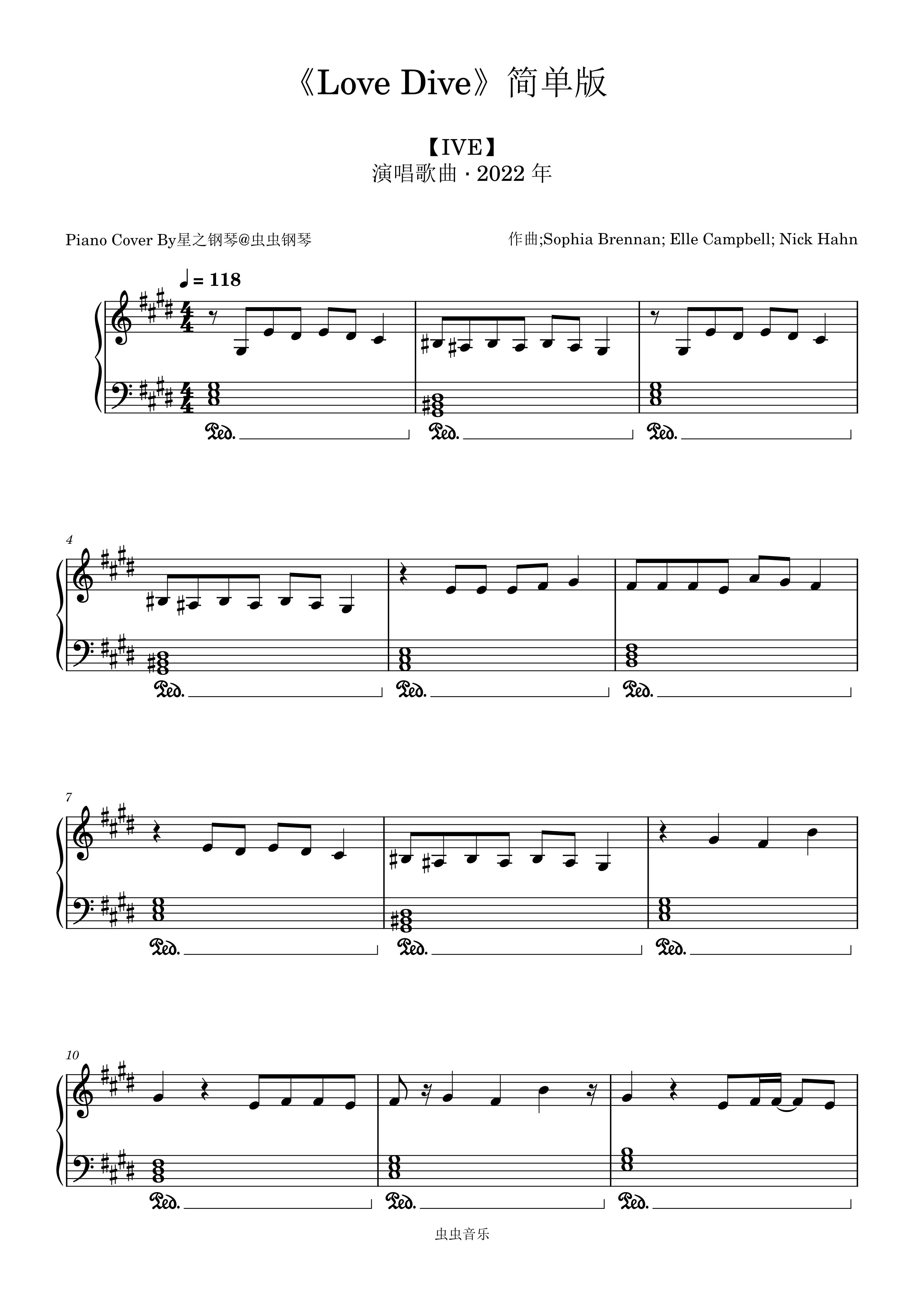 【IVE】《LOVE DIVE》简单钢琴谱~星之钢琴~