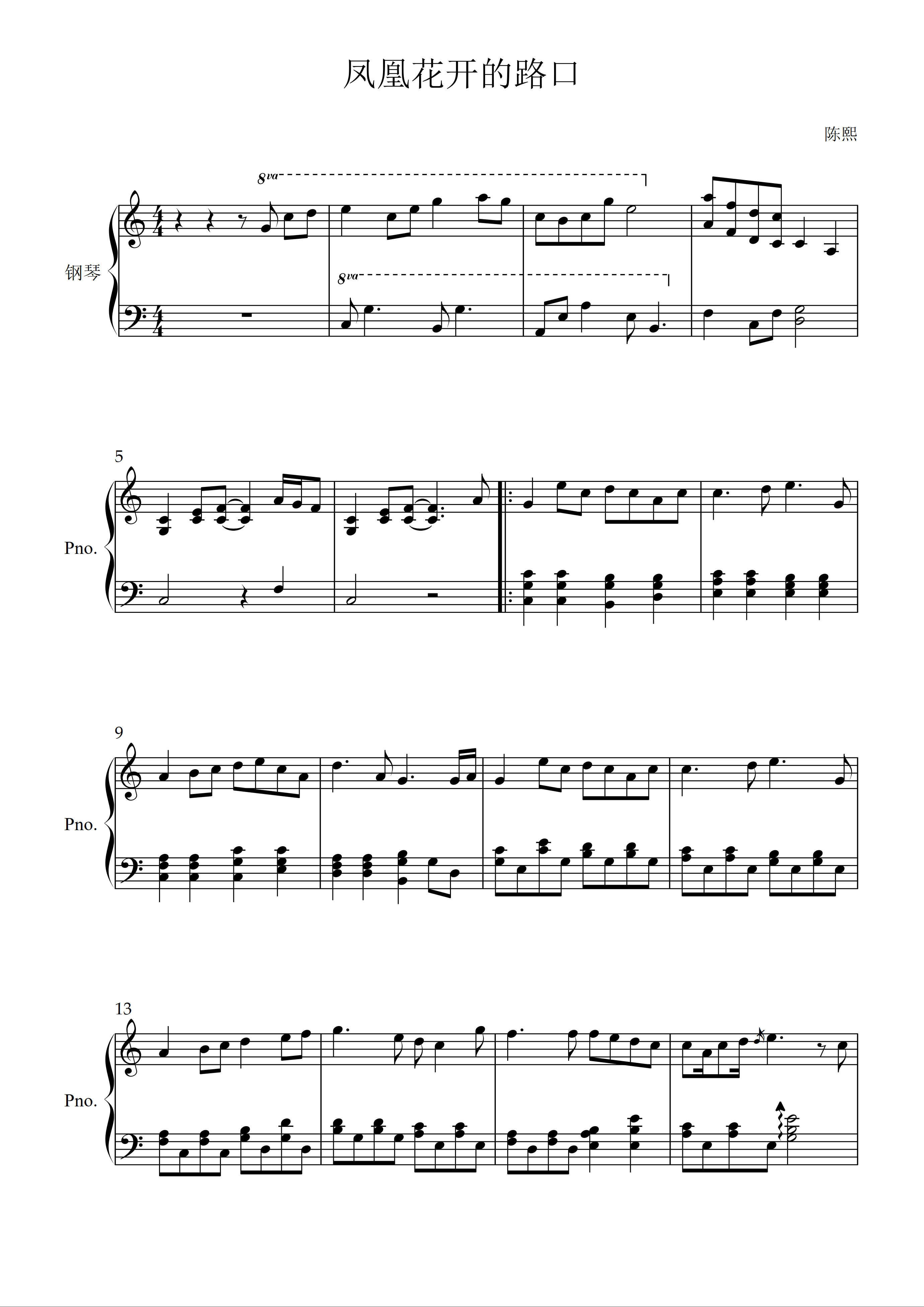 • 凤凰花开的路口钢琴简谱 C调 数字双手