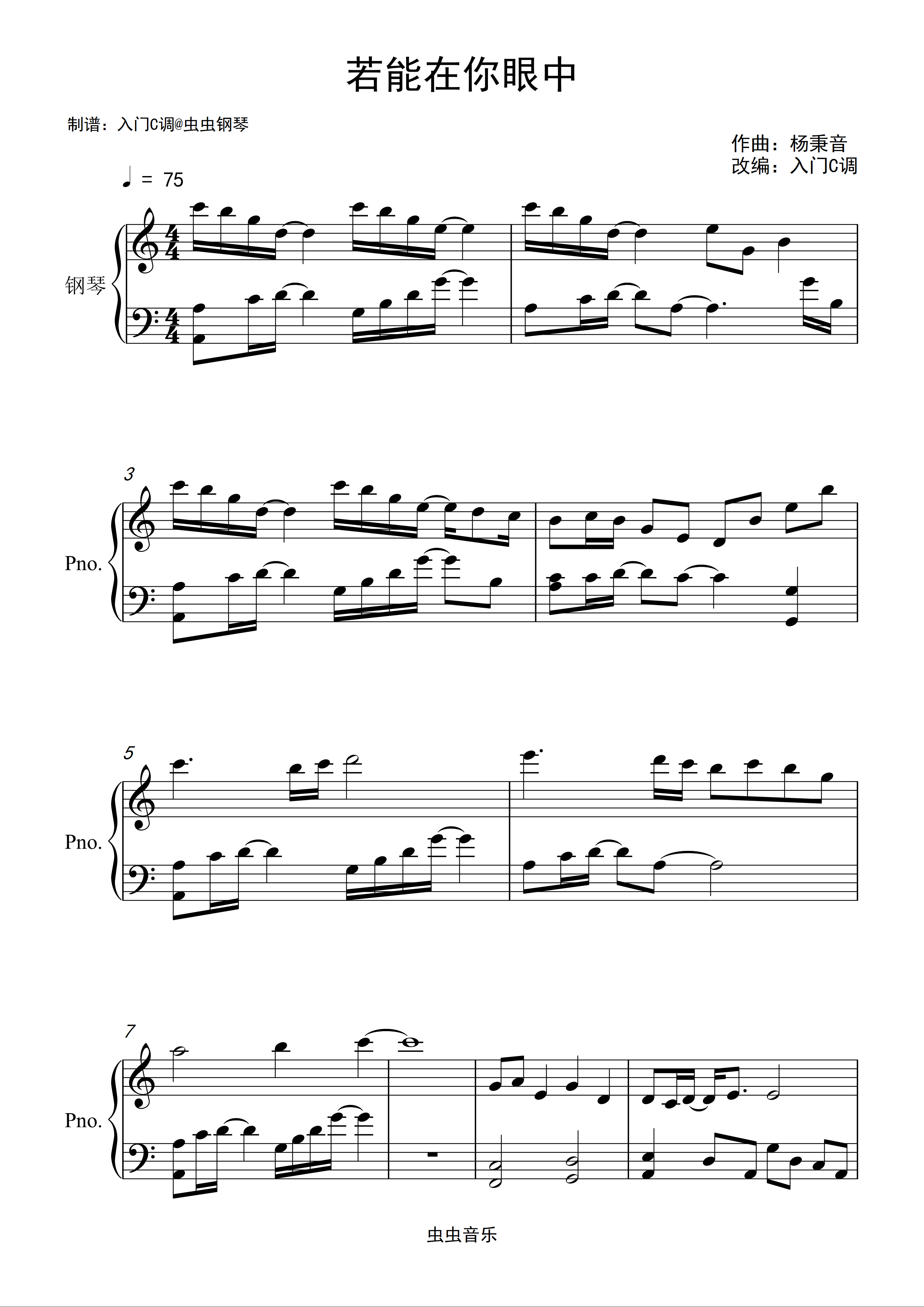 钢琴谱:若能在你眼中 (《白日提灯》影视剧奔爱曲)—刘宇宁【入门C调简单版】