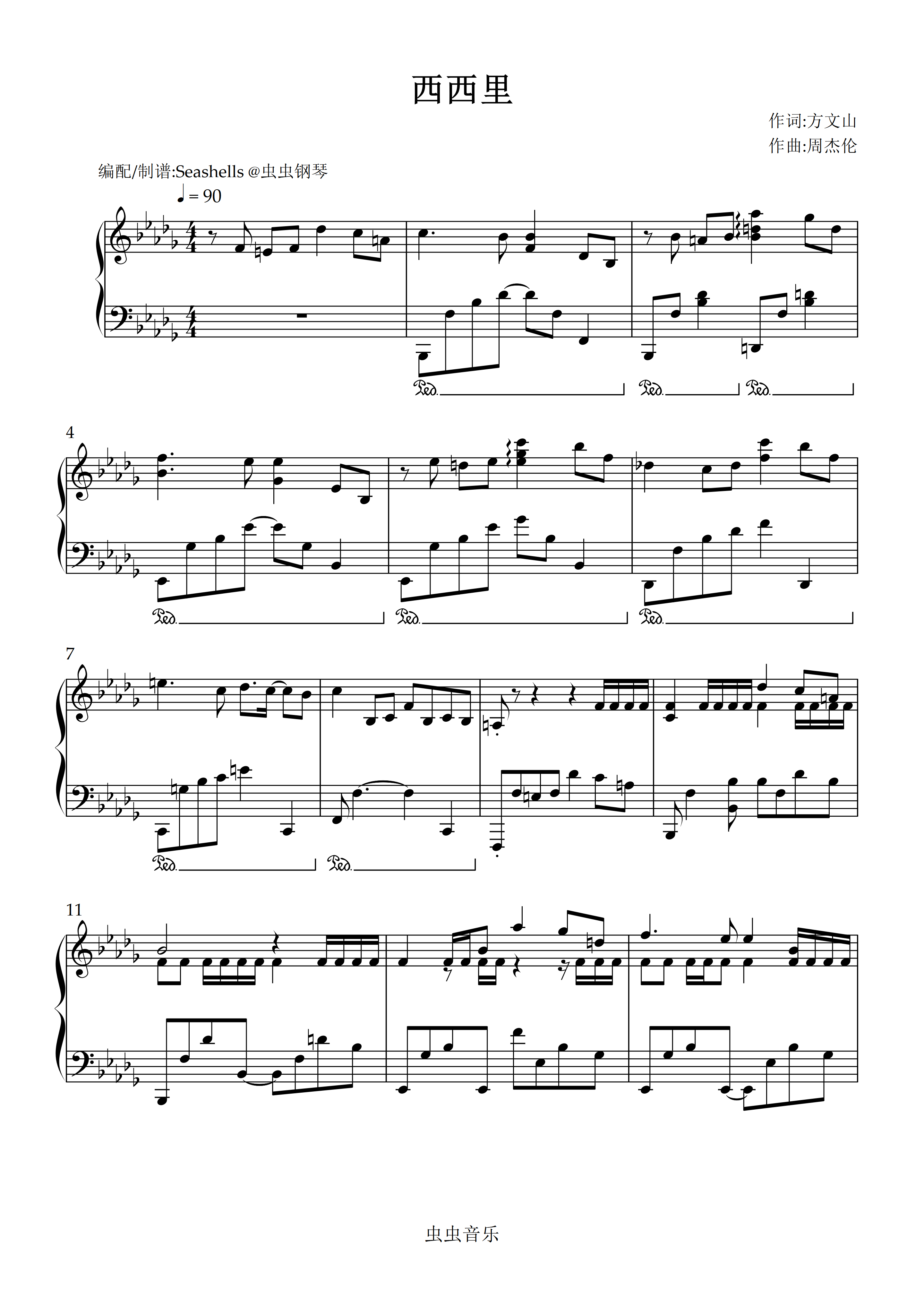 钢琴谱:周杰伦 - 《西西里》钢琴独奏谱