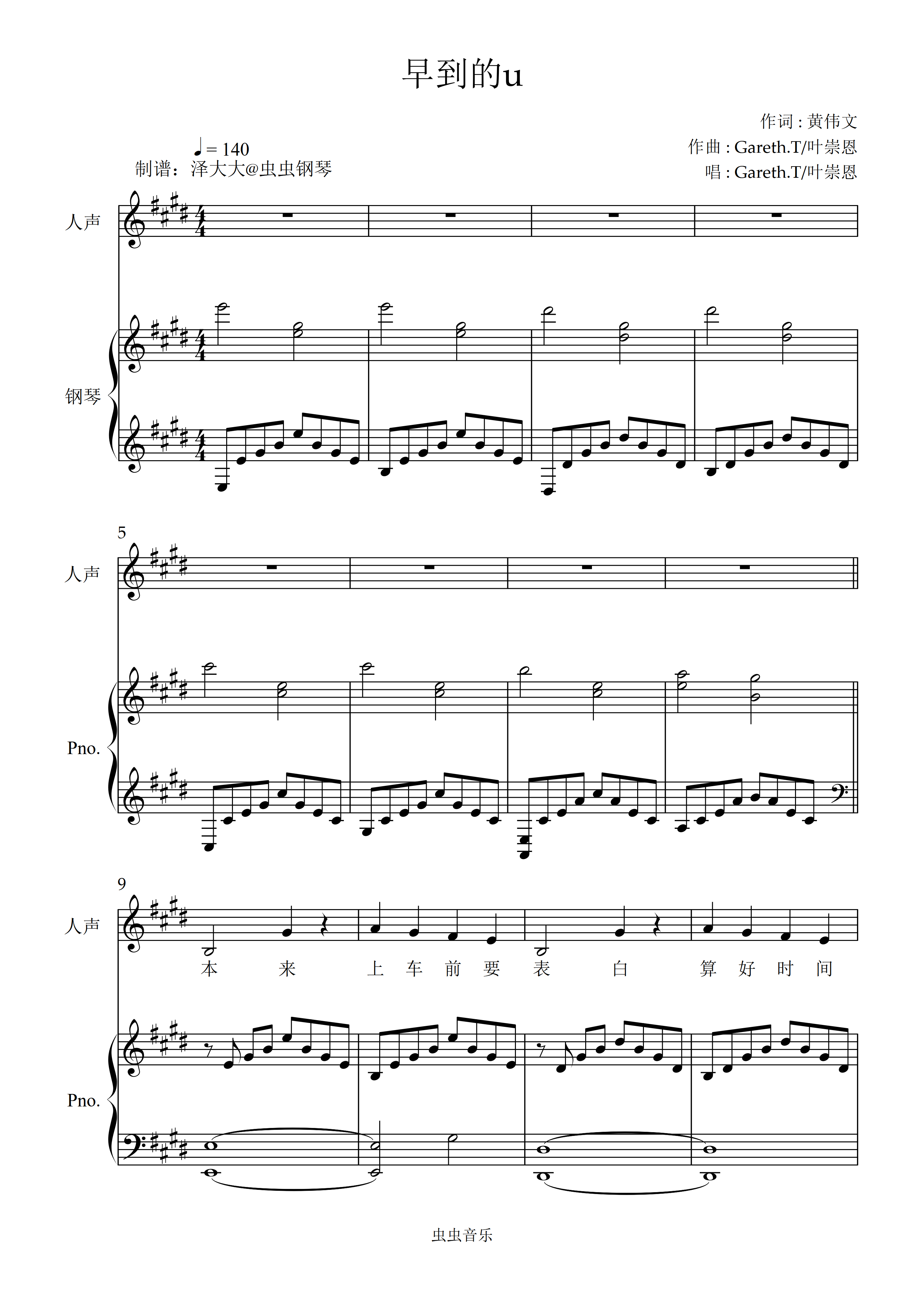 钢琴谱:早到的u【原版弹唱附词】泽大大 Gareth.T/叶崇恩