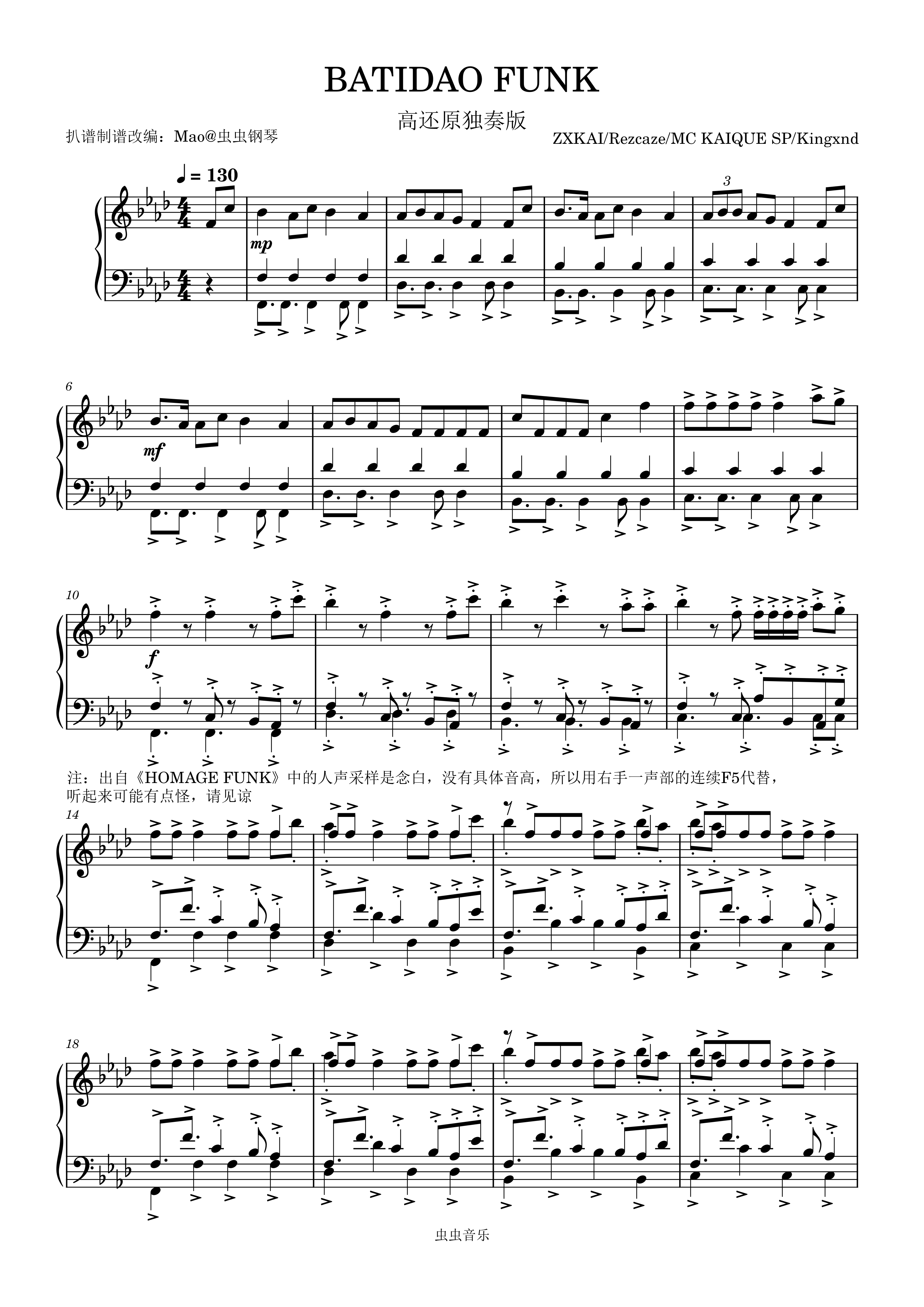 • Uptown Funk钢琴简谱 F调 数字双手 Mark Ronson/Bruno Mars/Jeff Bhasker/Philip Lawrence/Devon Gallaspy/Nicholaus Williams/Lonnie Simmons/Ronnie Wilson/Charles Wilson/Rudolph Taylor/Robert Wilson