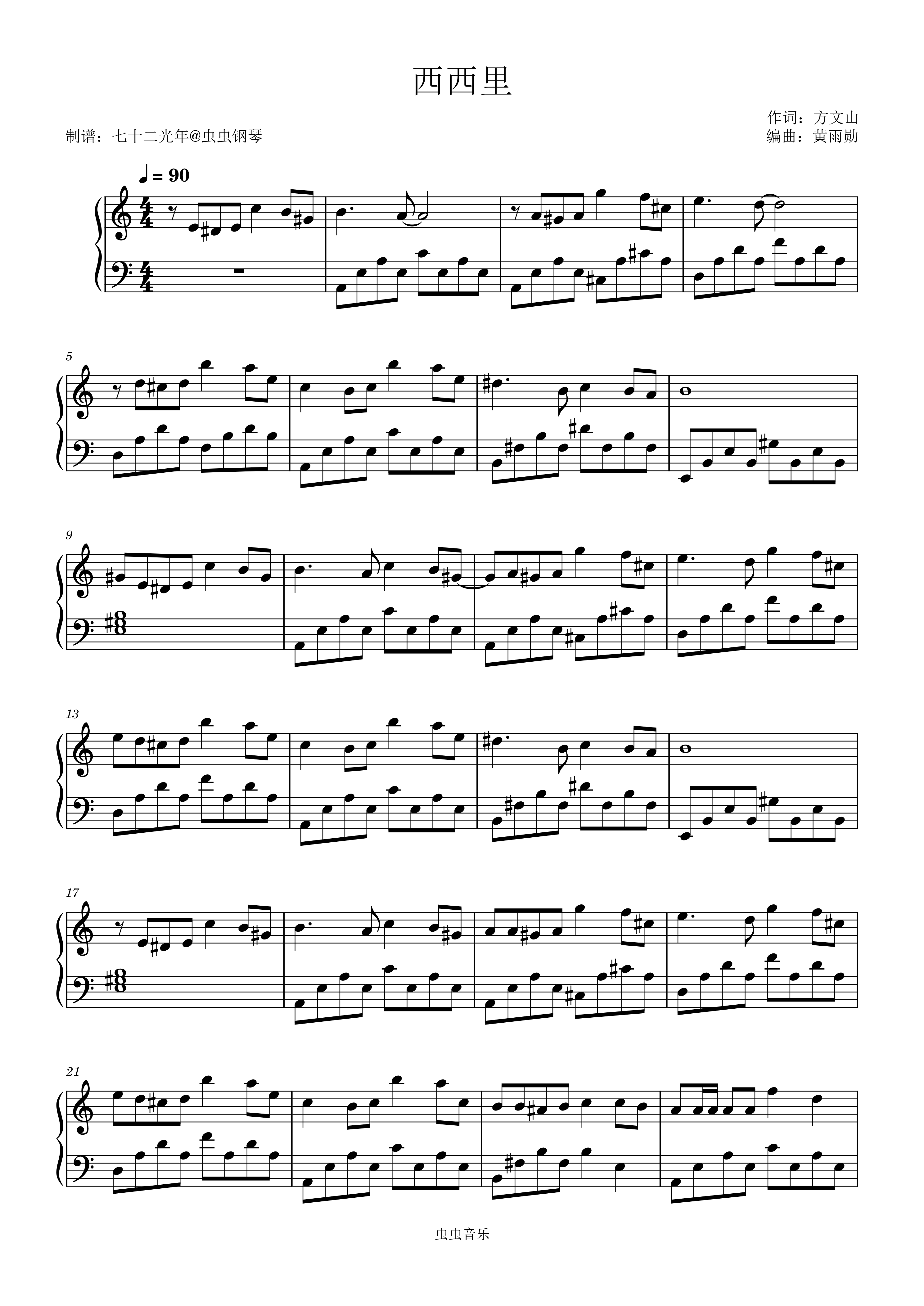 • 4级 中小型乐曲 西西里舞曲钢琴简谱 C调 数字双手