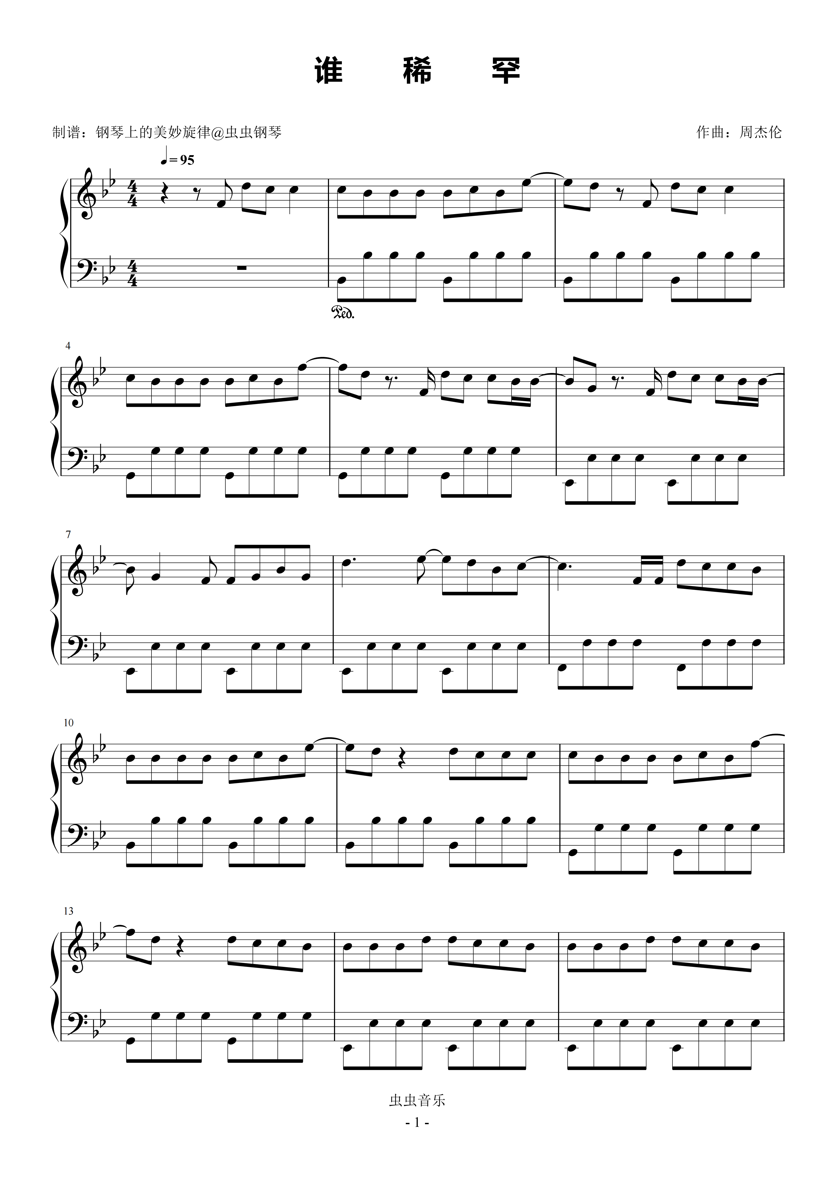 钢琴谱:谁稀罕 原调简易版 周杰伦