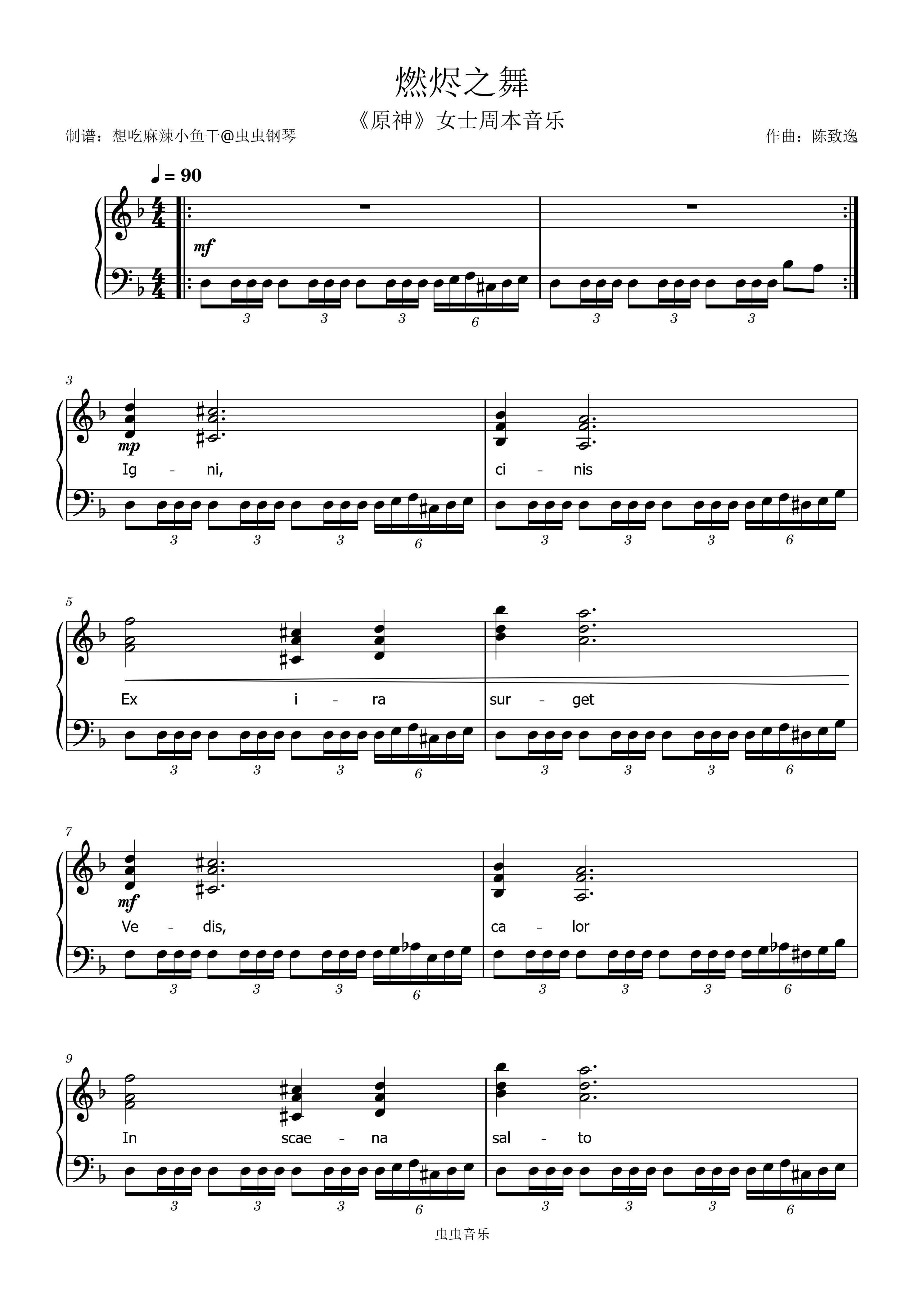 钢琴谱:燃烬之舞(《原神》女士周本音乐)