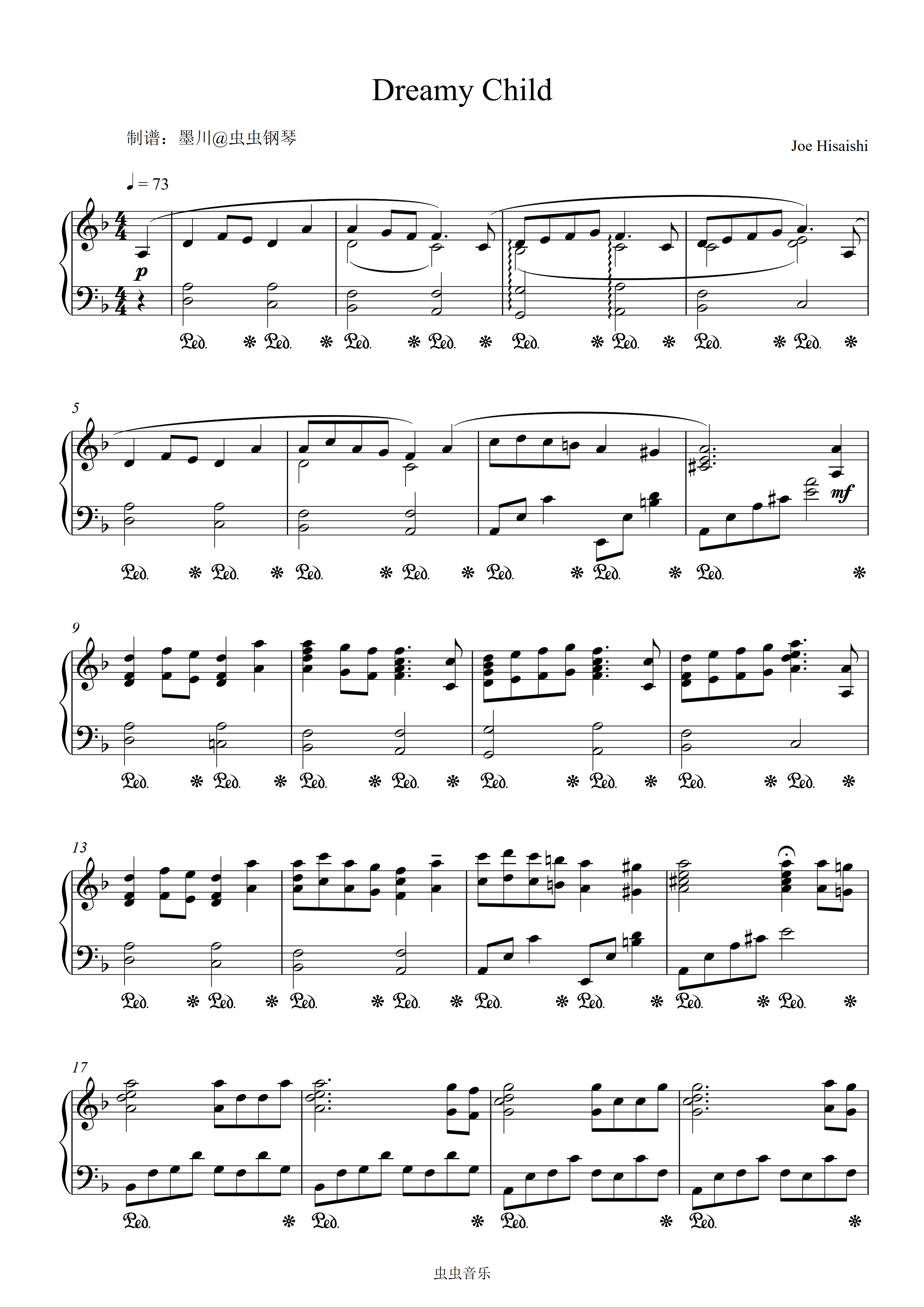 • 空幻的孩子-Dreamy Child钢琴简谱 F调 数字双手