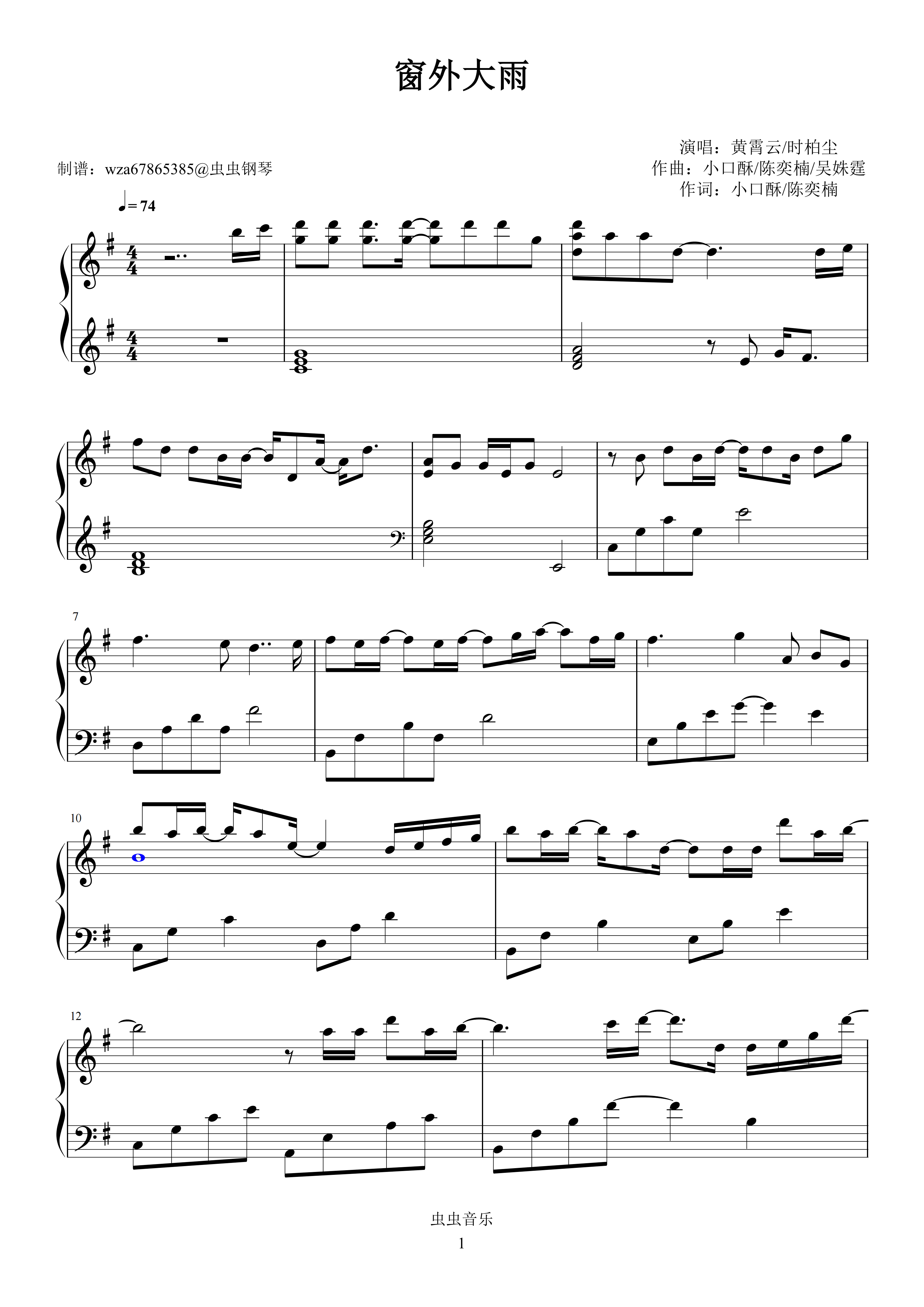 钢琴谱:窗外大雨