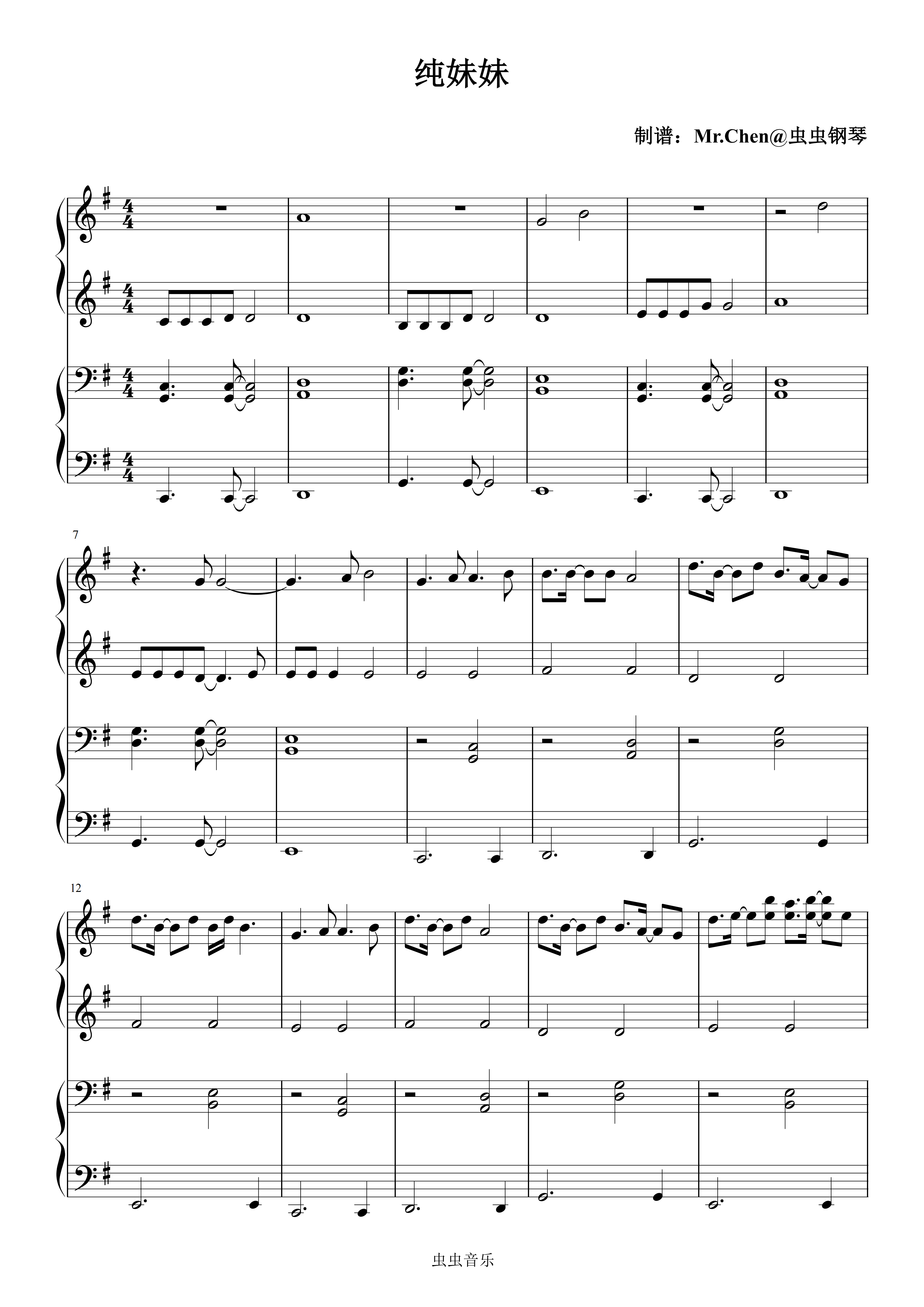 钢琴谱:纯妹妹 (四手联弹)- 单依纯