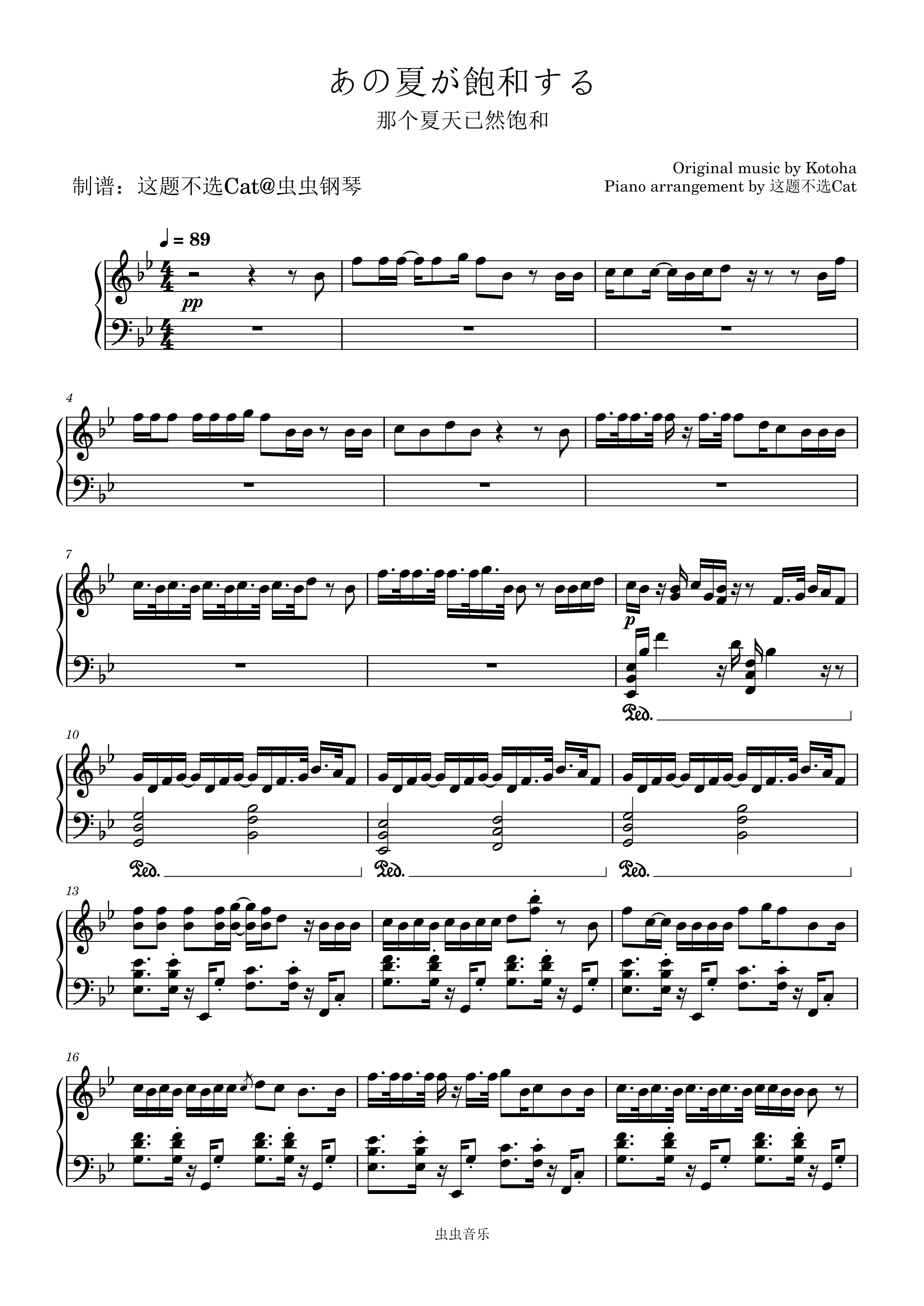 钢琴谱:那个夏日已然饱和(あの夏が飽和する。)Kotoha版