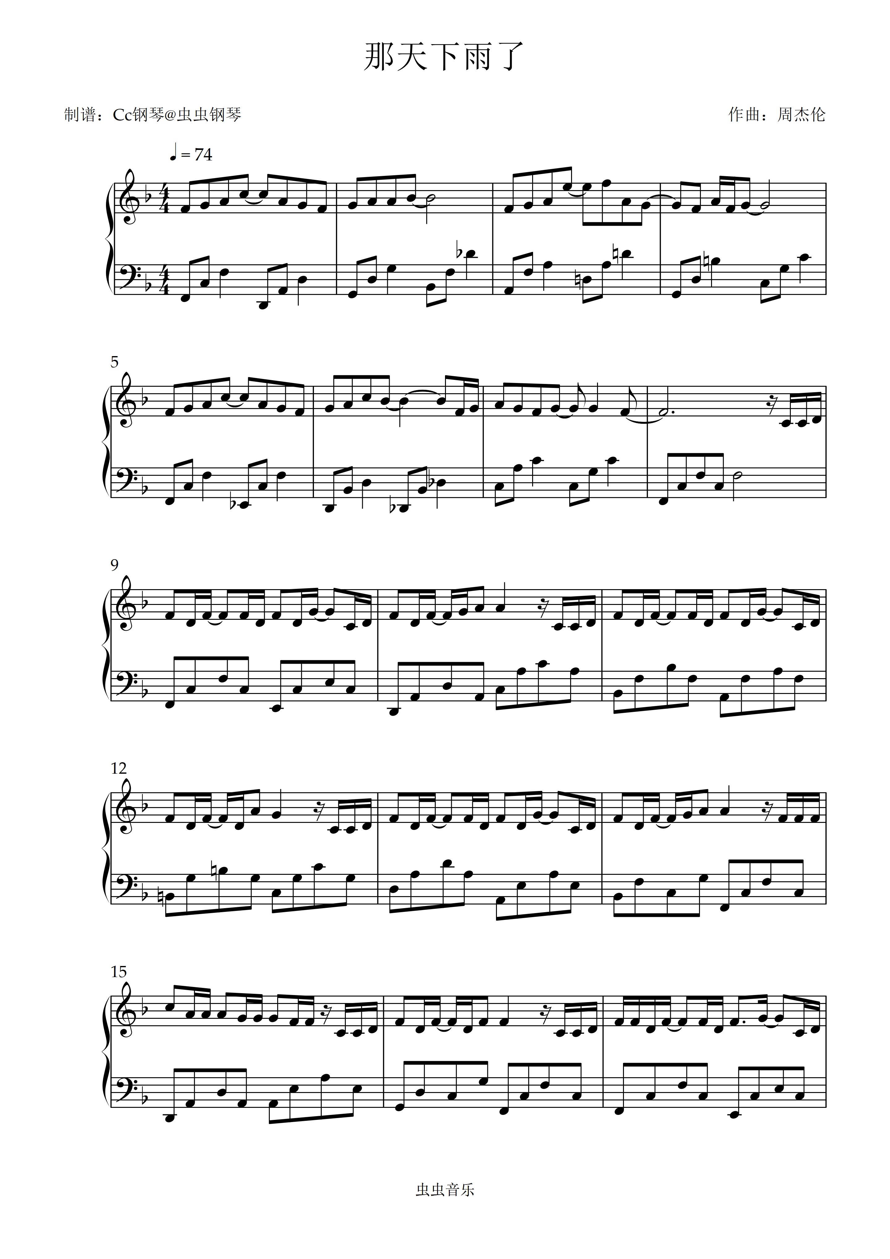 • 回到最爱的那天钢琴简谱 F调 数字双手 林若宁