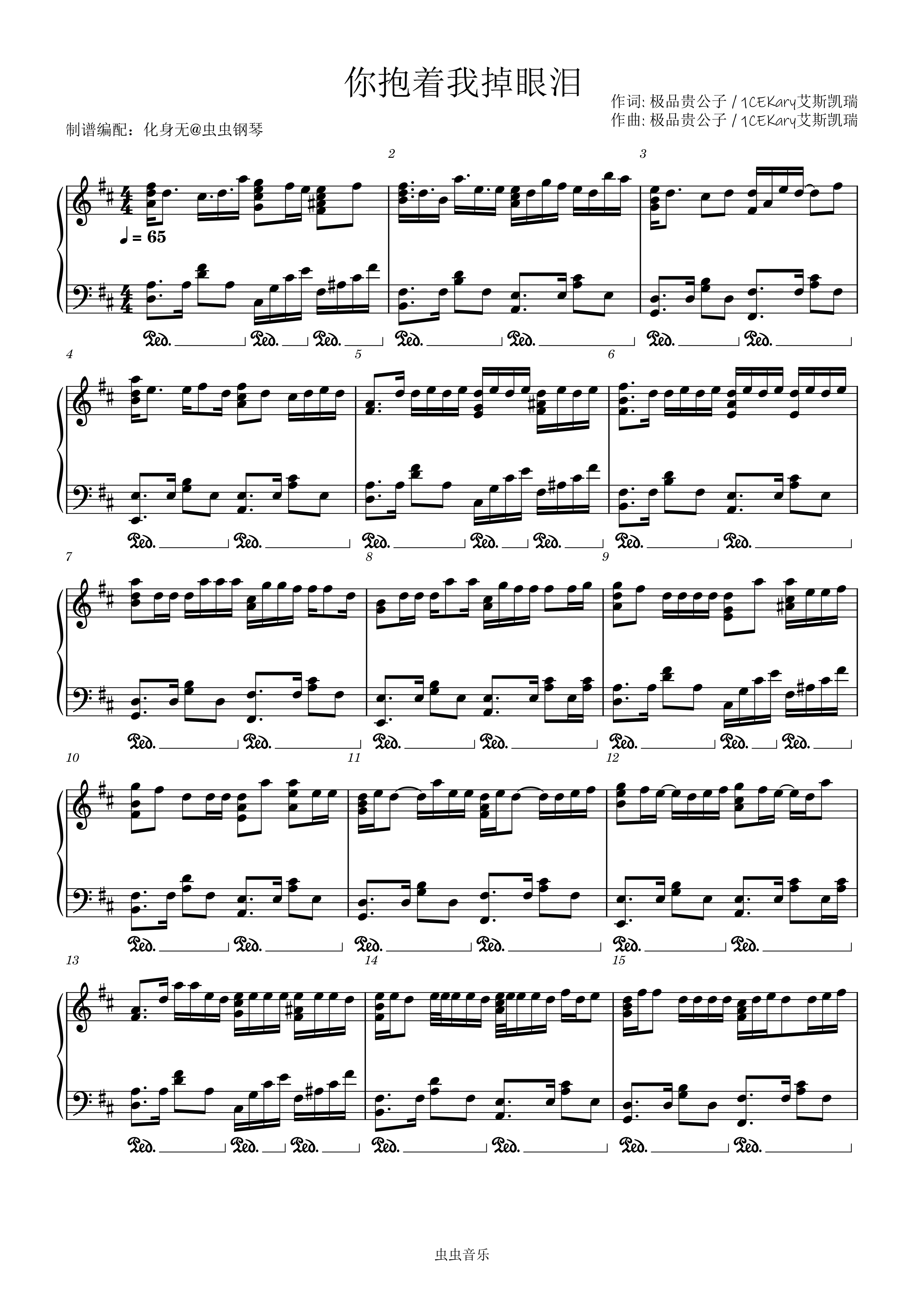 钢琴谱:你抱着我掉眼泪 原调独奏版 化身无编配