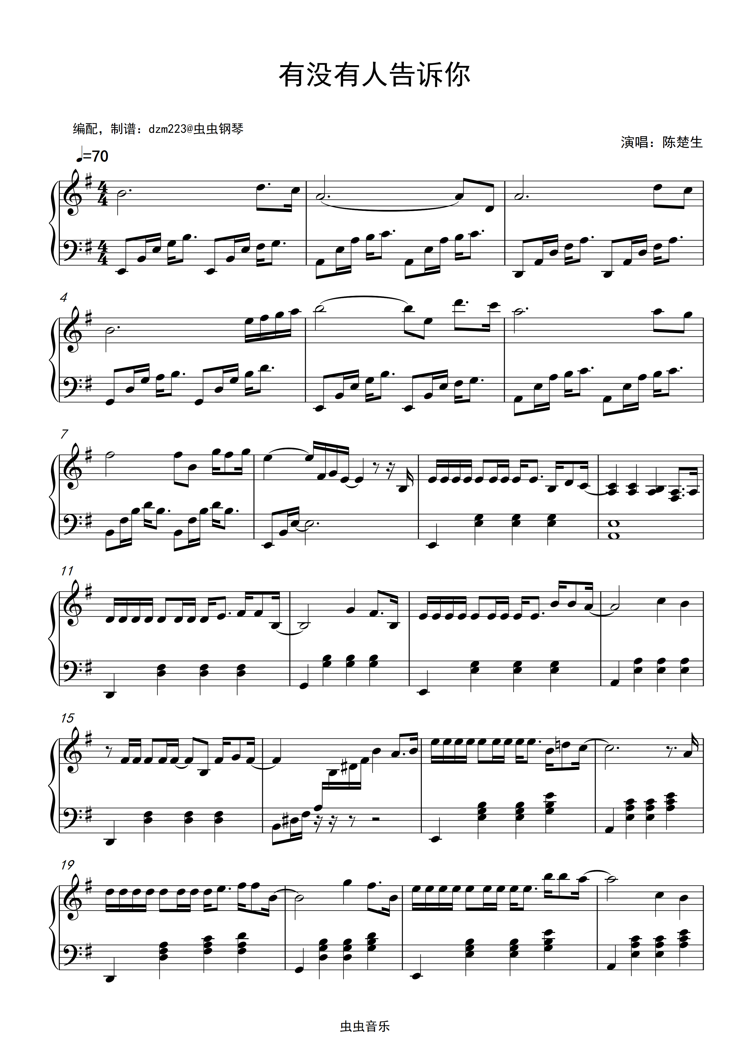 有没有人告诉你钢琴简谱 数字双手 陈楚生