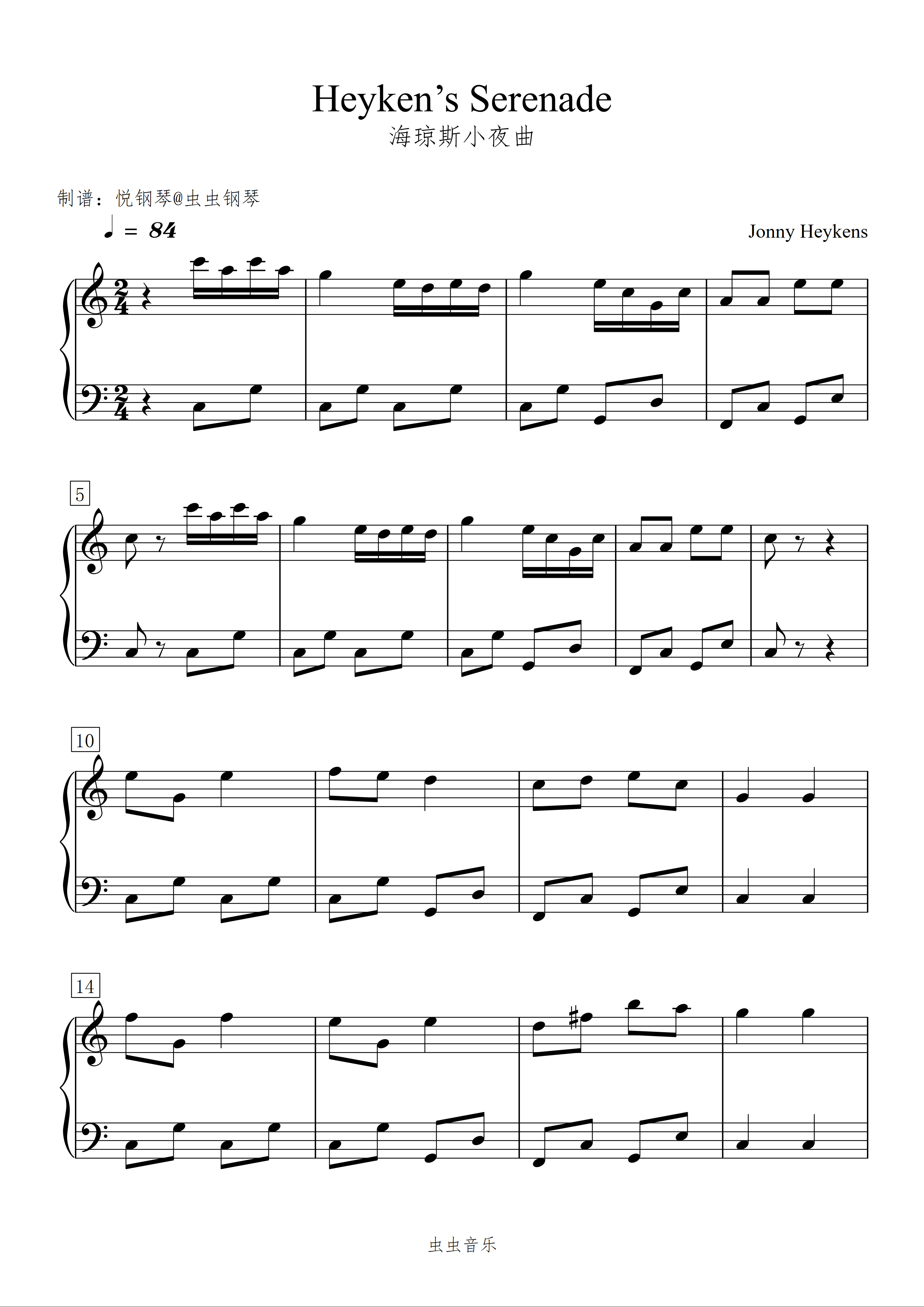 钢琴谱:海琼斯小夜曲Heyken’s Serenade-C调版【清新-抒情】
