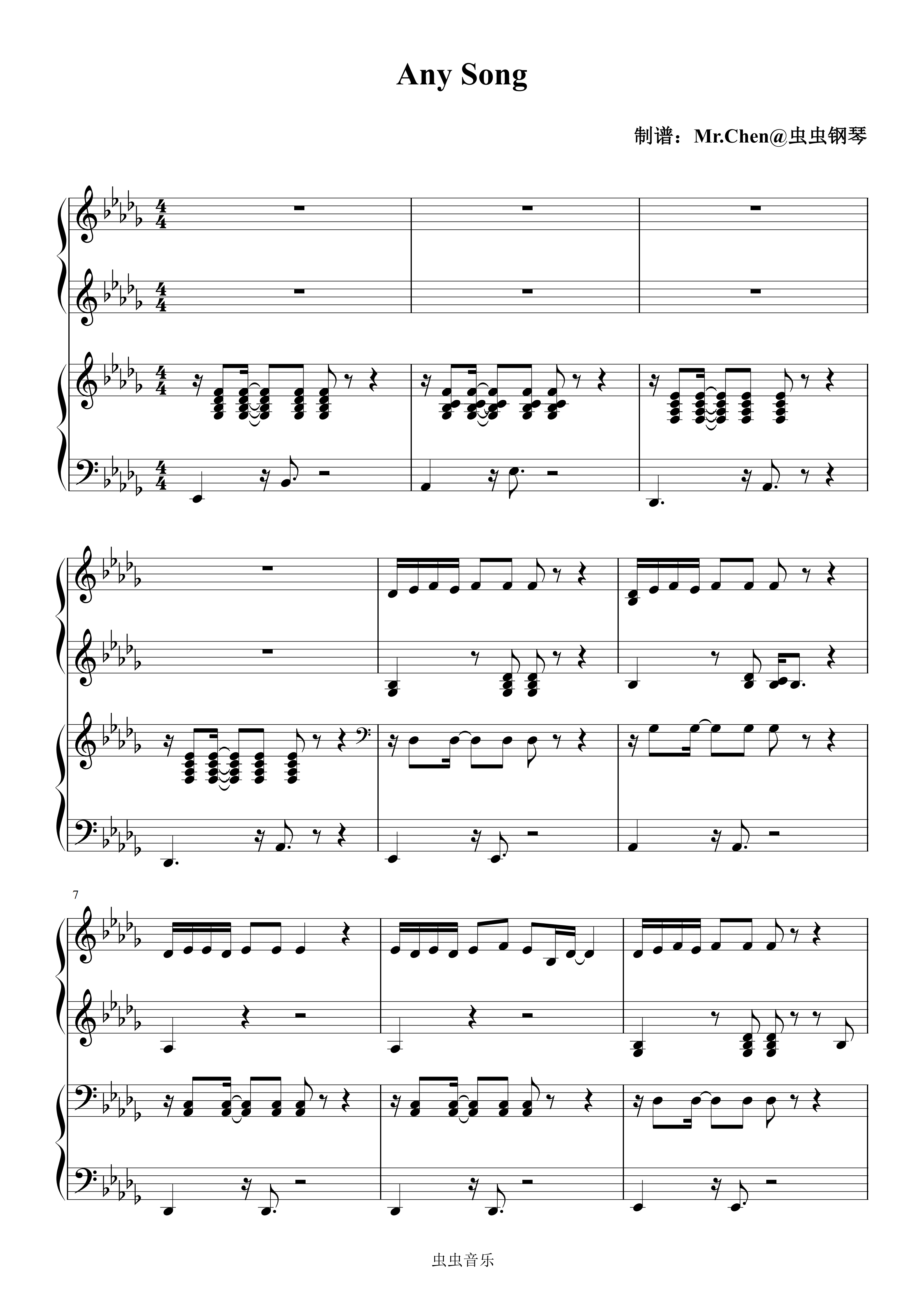 钢琴谱:Any Song (四手联弹)- ZICO