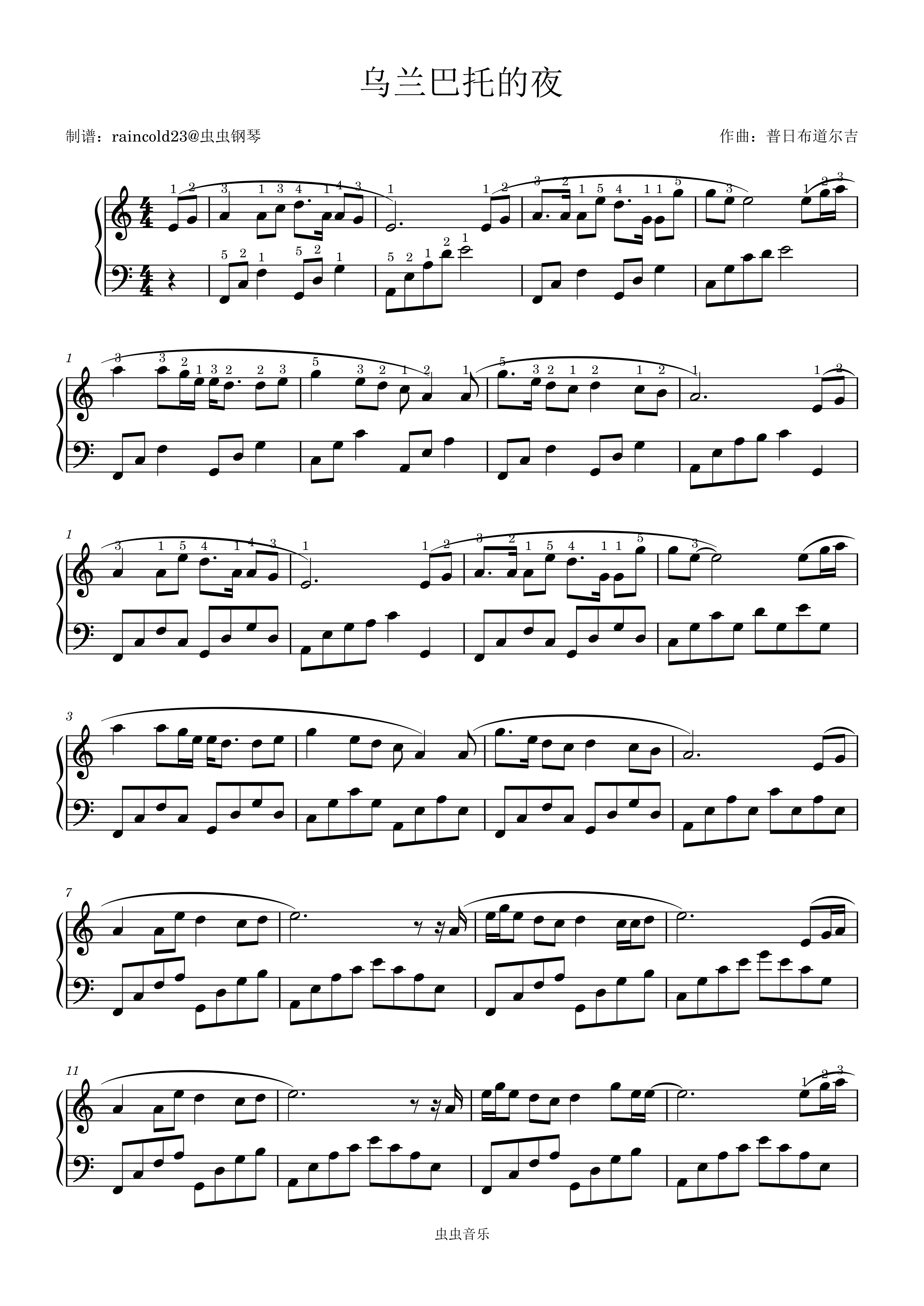• 夜的钢琴曲五钢琴简谱 C调 数字双手