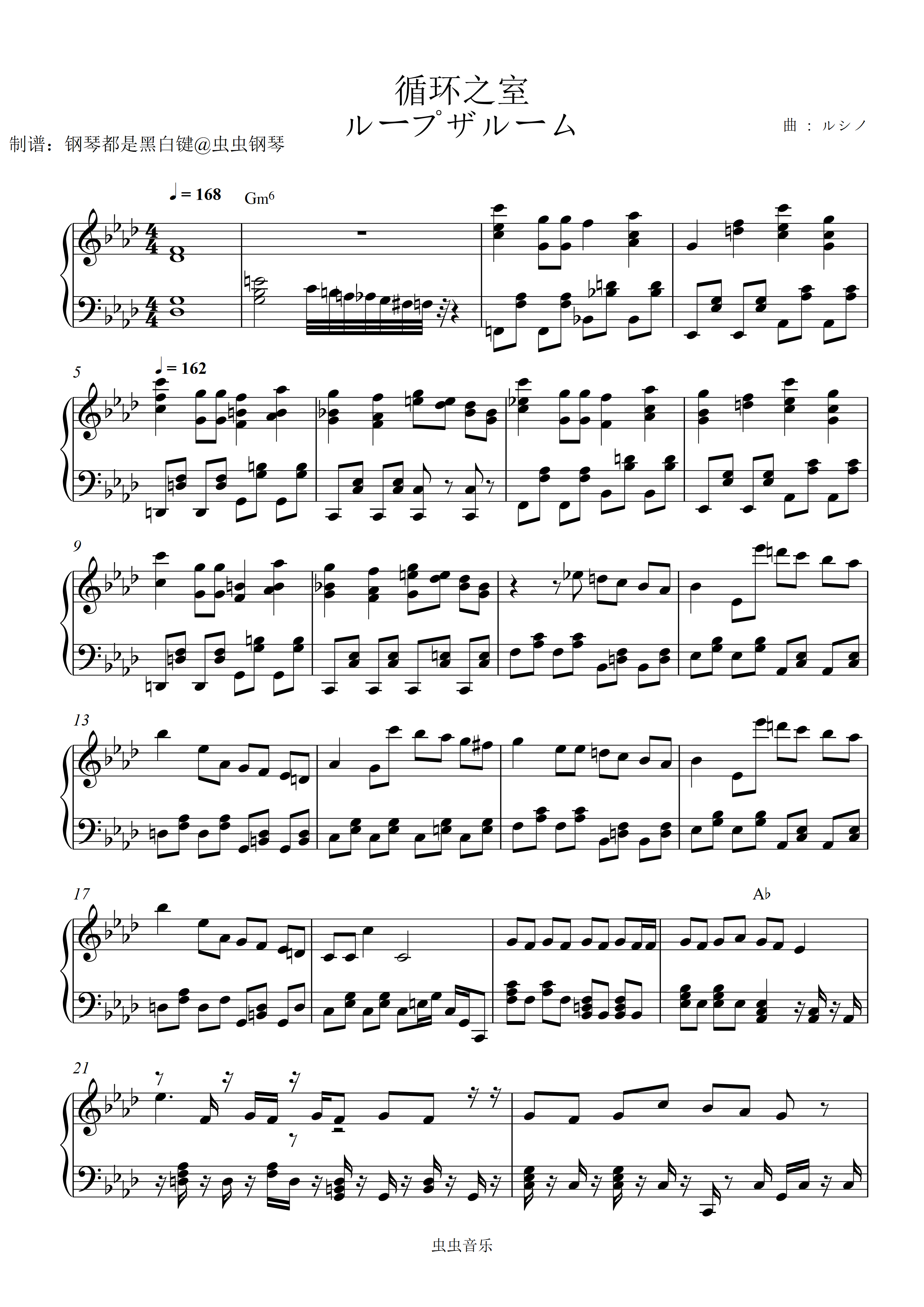 钢琴谱:【初音ミク】循环之室/ループザルーム
