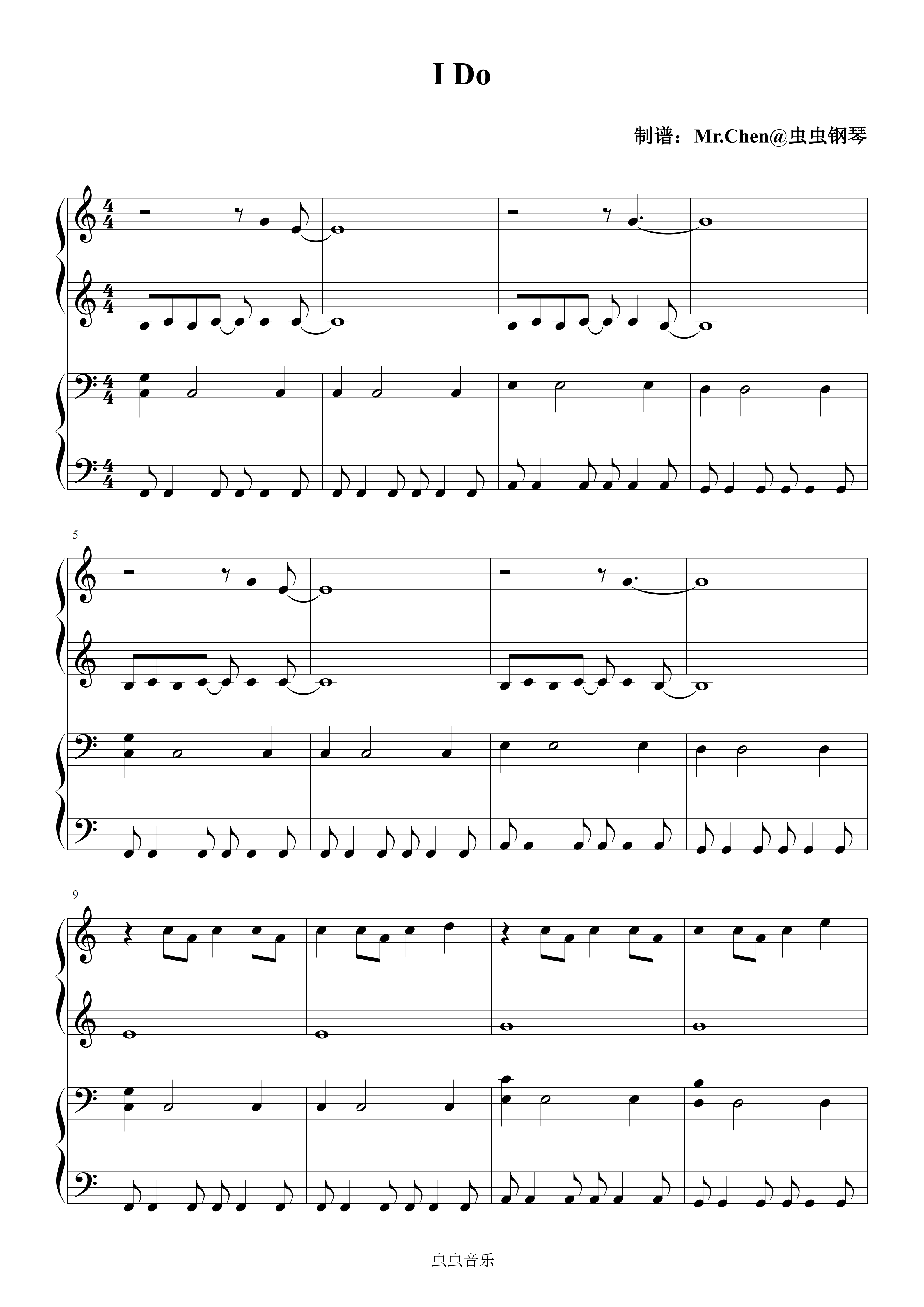 钢琴谱:I Do (四手联弹)C调 - 周杰伦