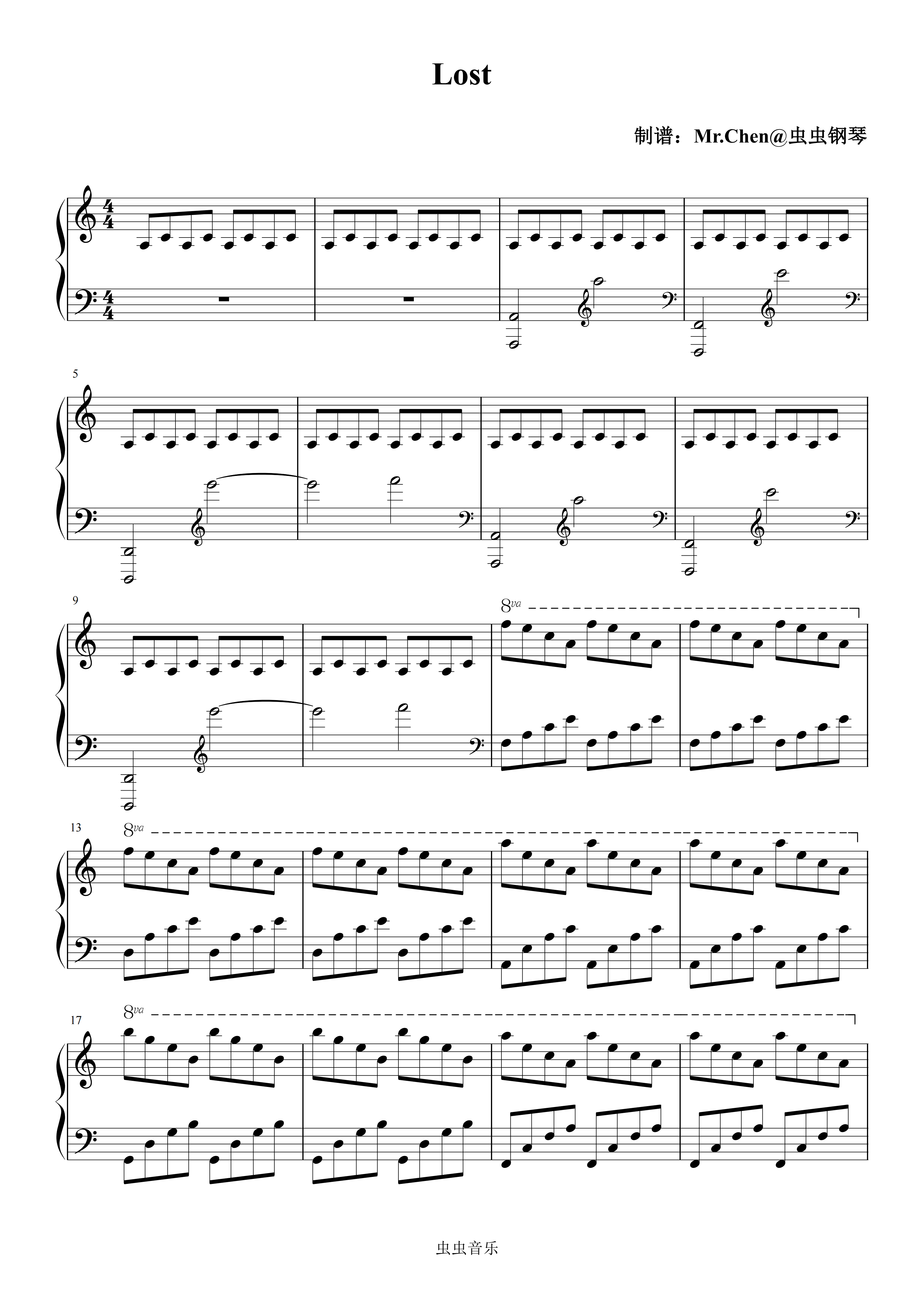 钢琴谱:Lost - Tony Ann C调版