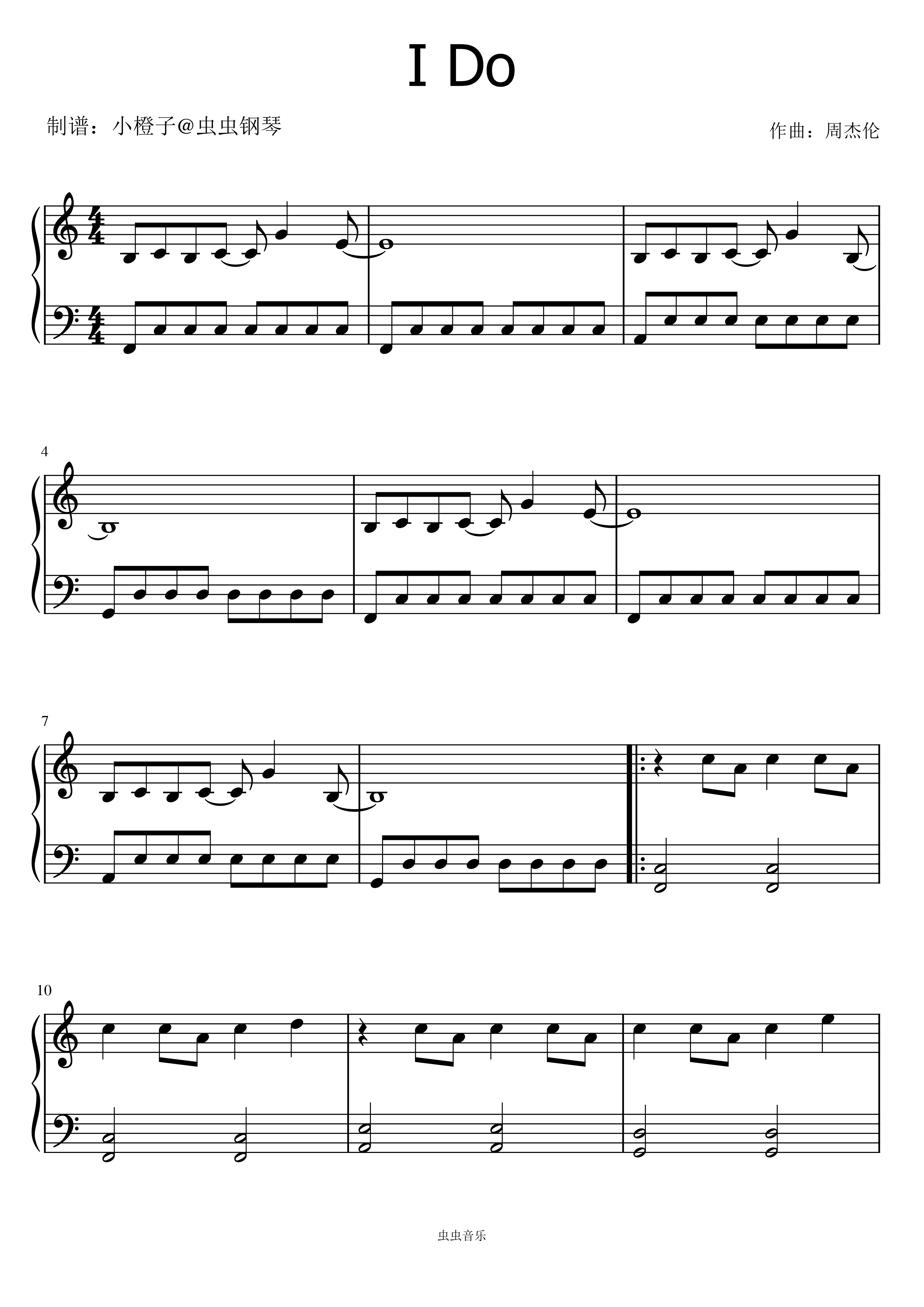 钢琴谱:超简单C调《I DO》周杰伦+拜厄难度