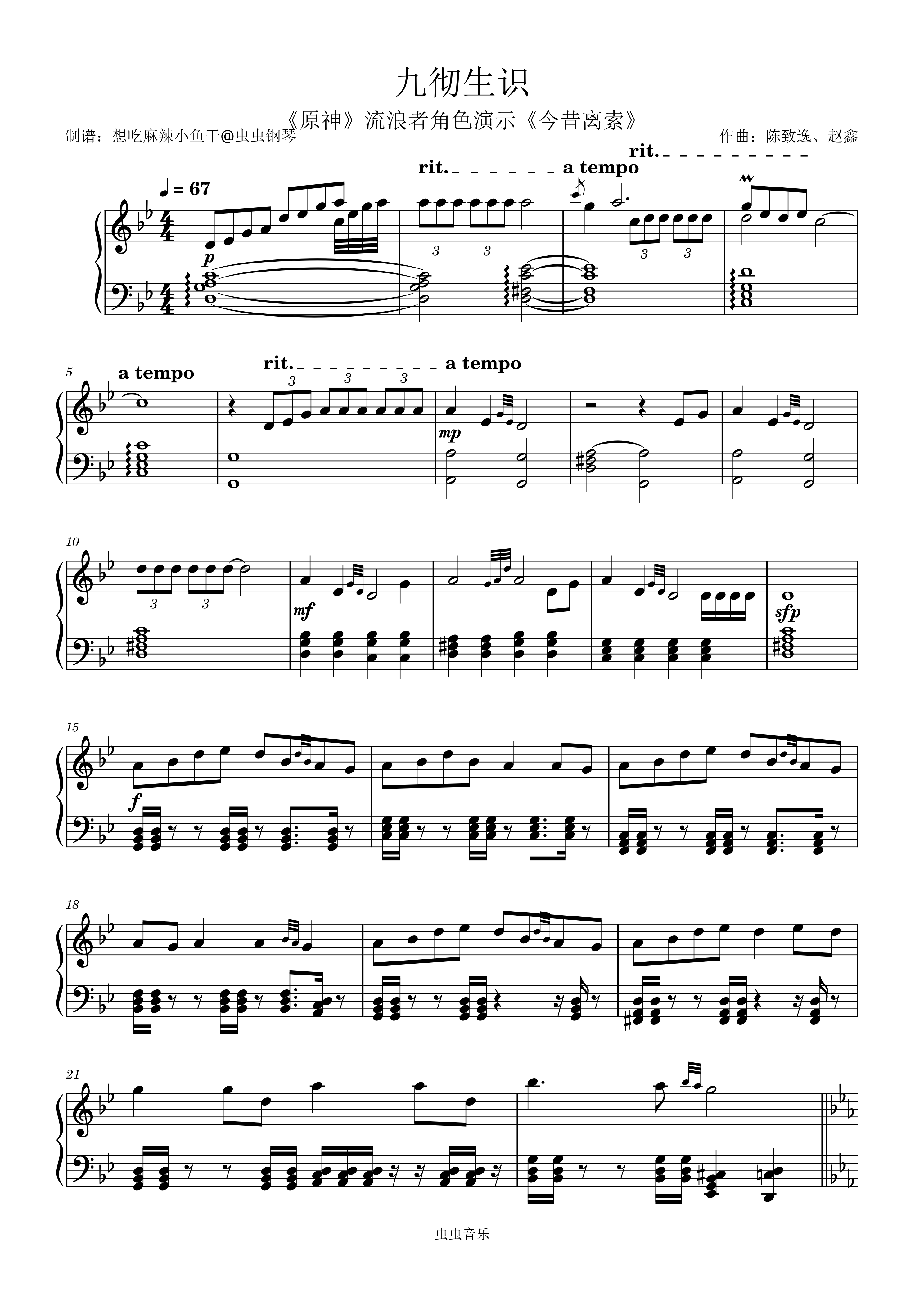 钢琴谱:九彻生识(《原神》流浪者角色演示《今昔离索》)