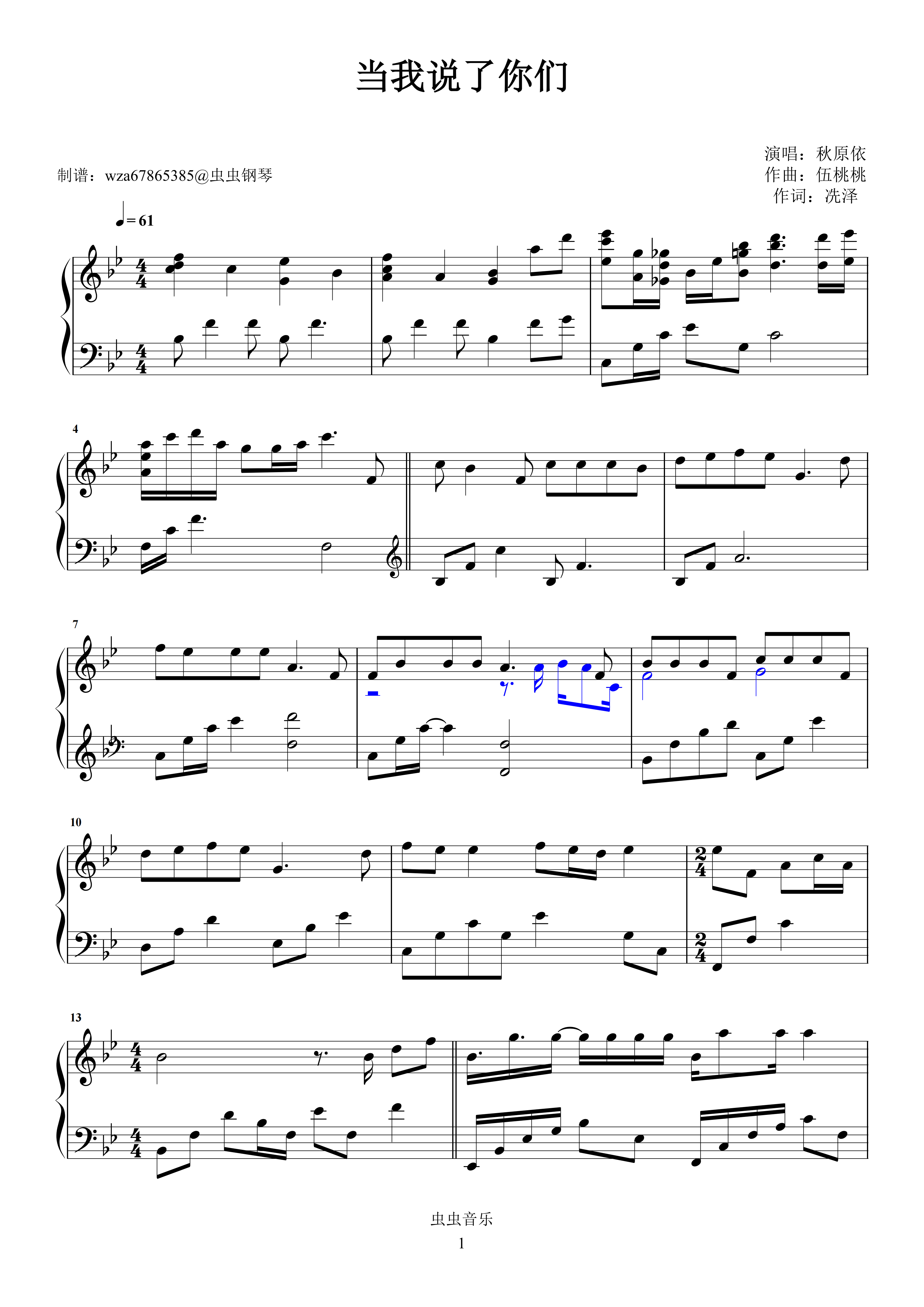 • 给你们钢琴简谱 Ab调 数字双手 十一郎