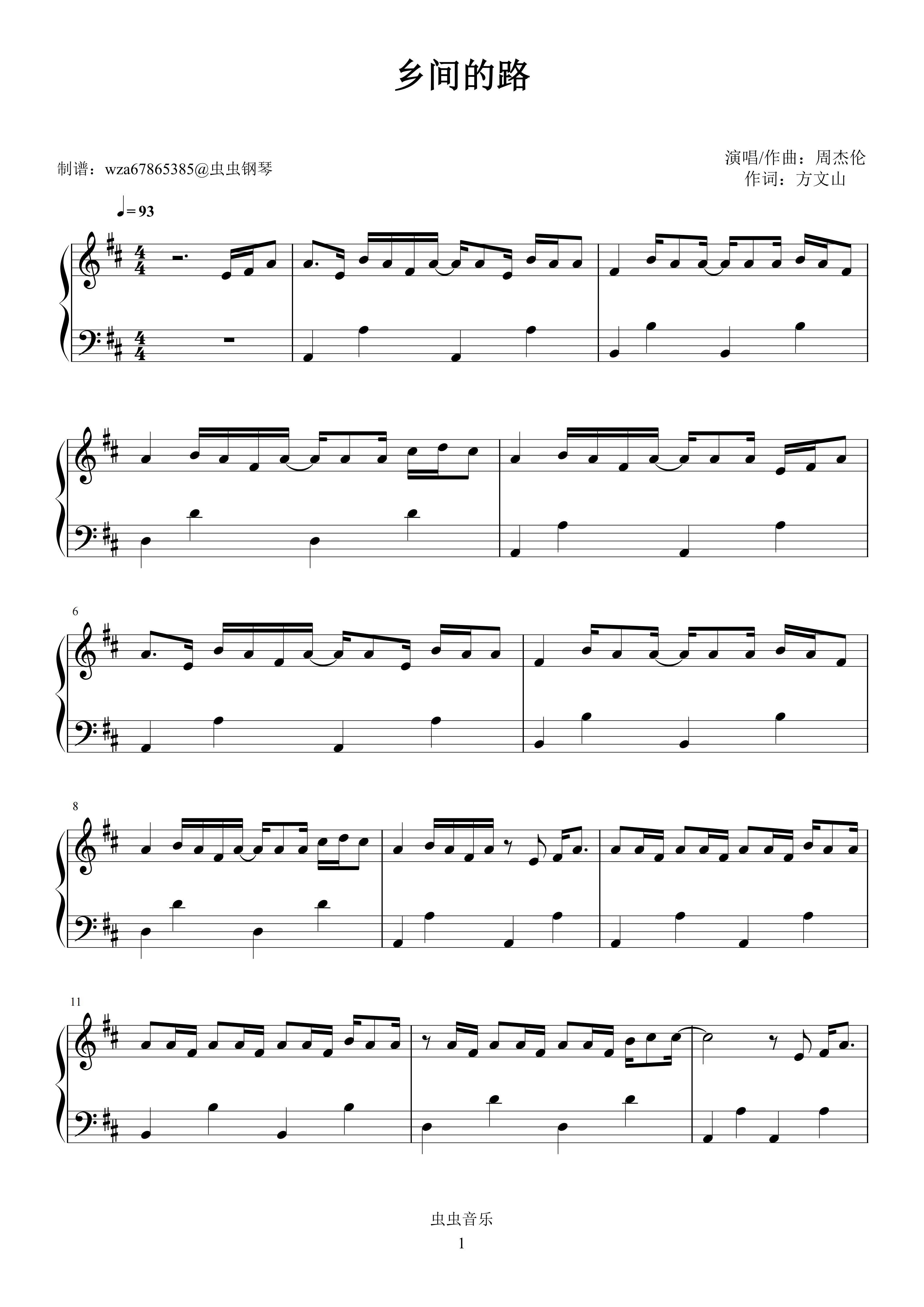 钢琴谱:乡间的路