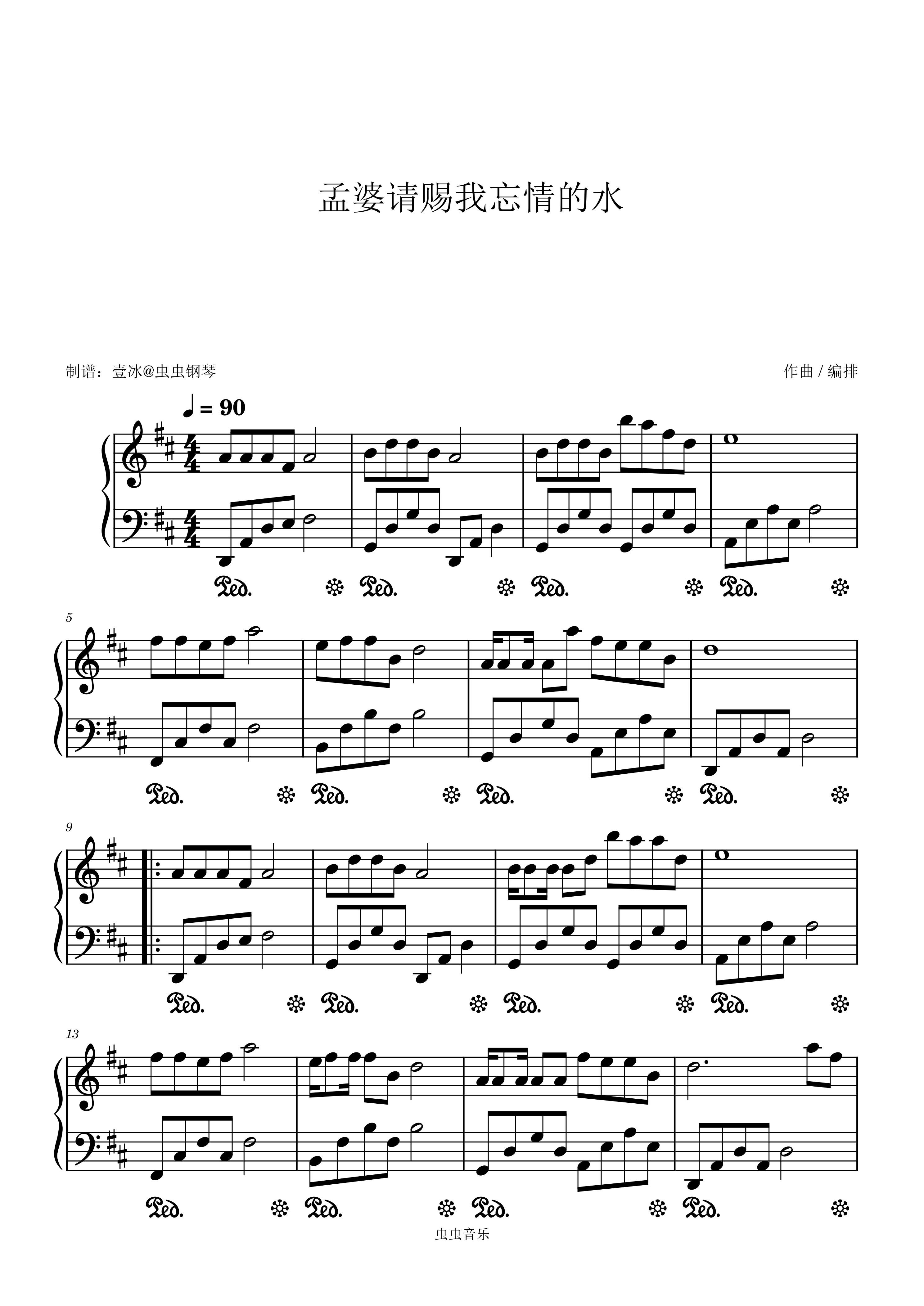 钢琴谱:孟婆请赐我忘情的水 原调