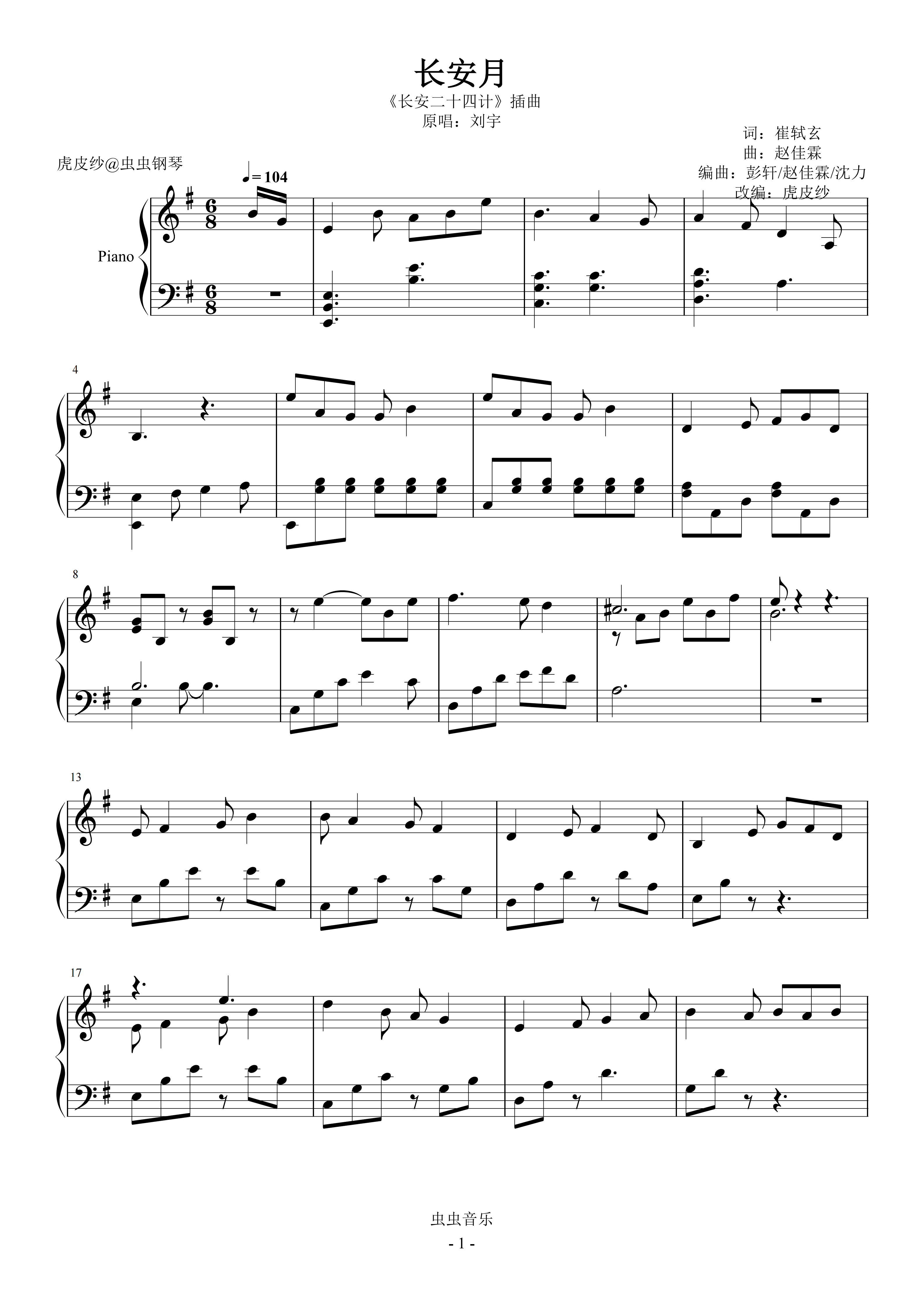 • 守月钢琴简谱 C调 数字双手 唐湘智/吴姝霆/张鹏鹏
