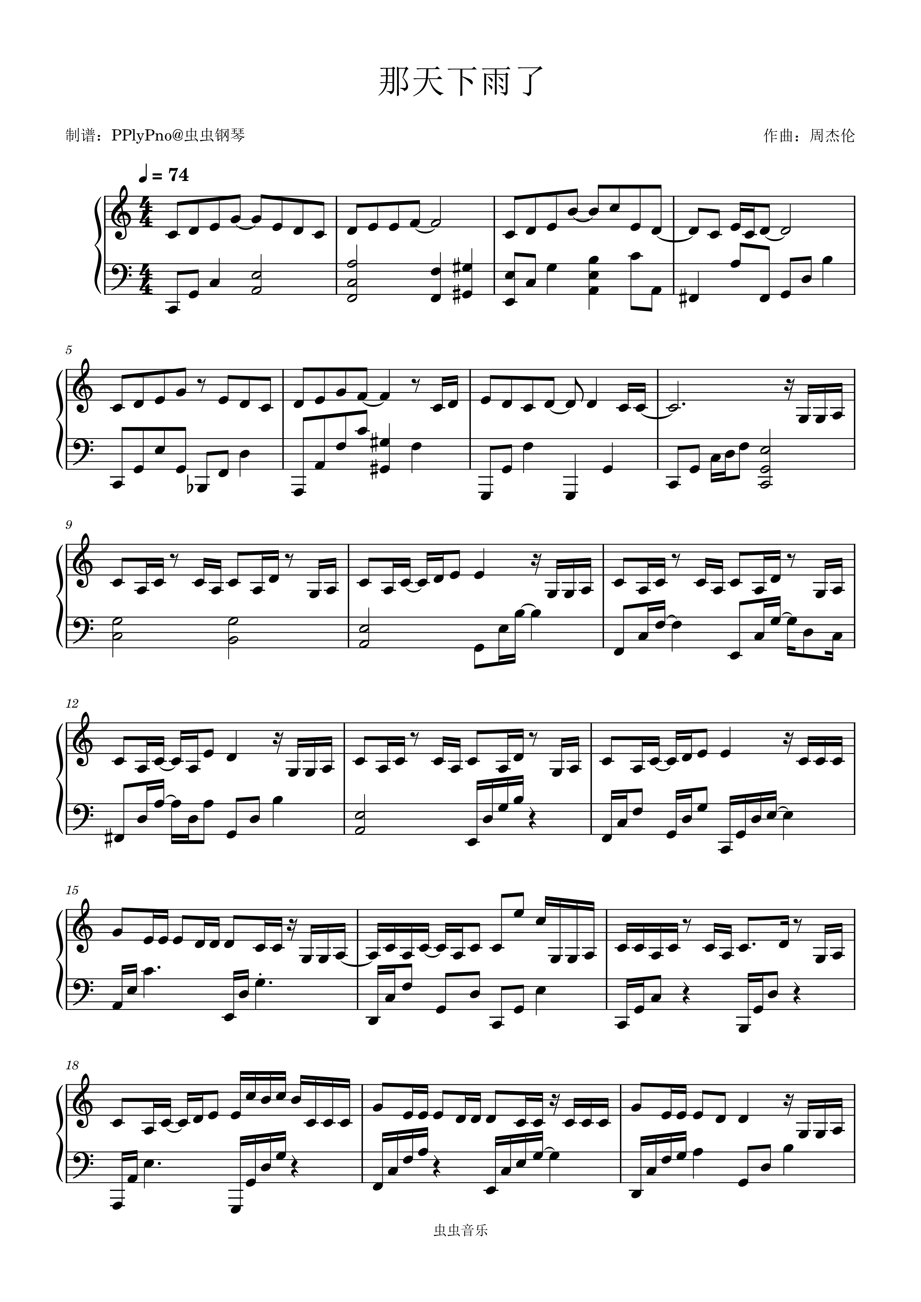 钢琴谱:那天下雨了C调版