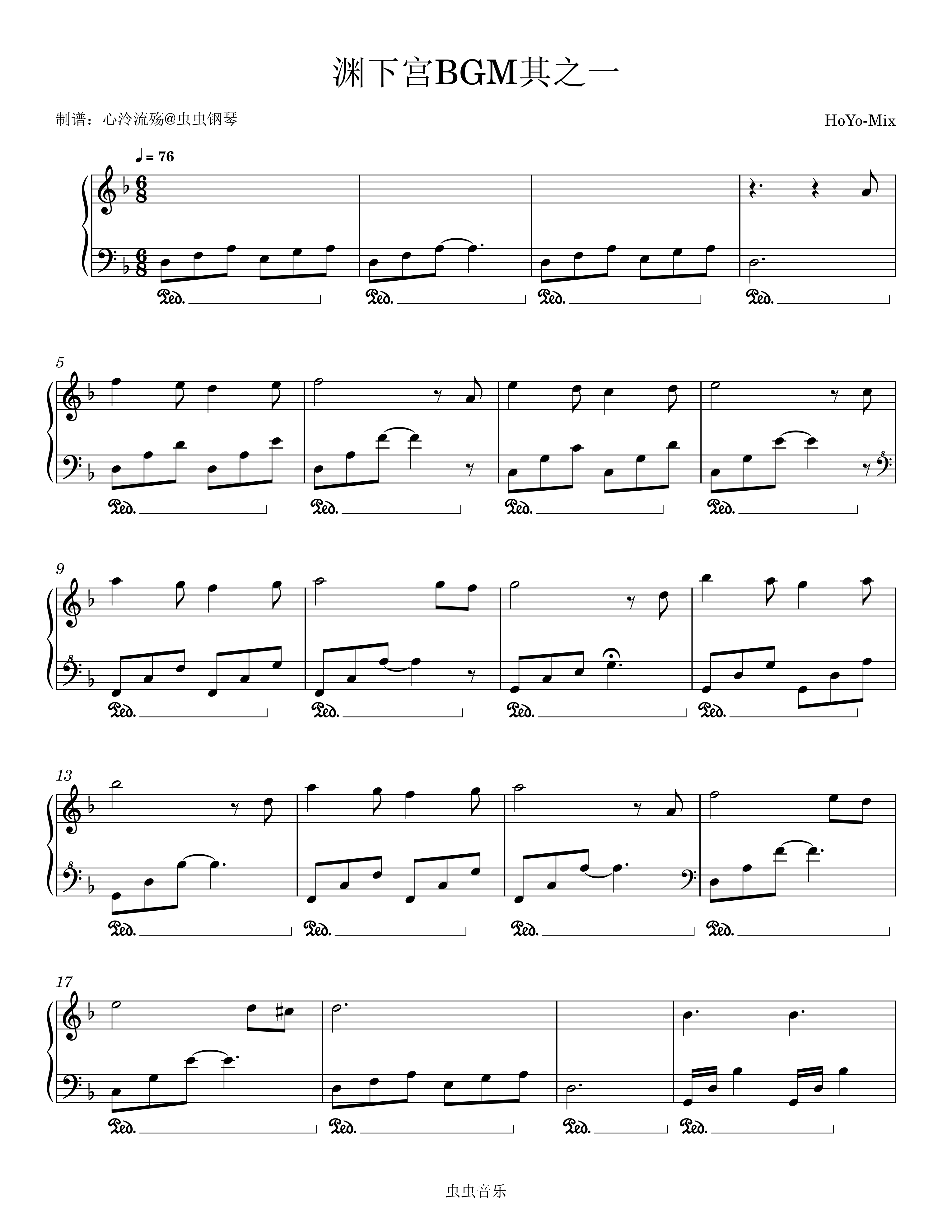 • 原神枫丹水下BGM钢琴简谱 G调 数字双手