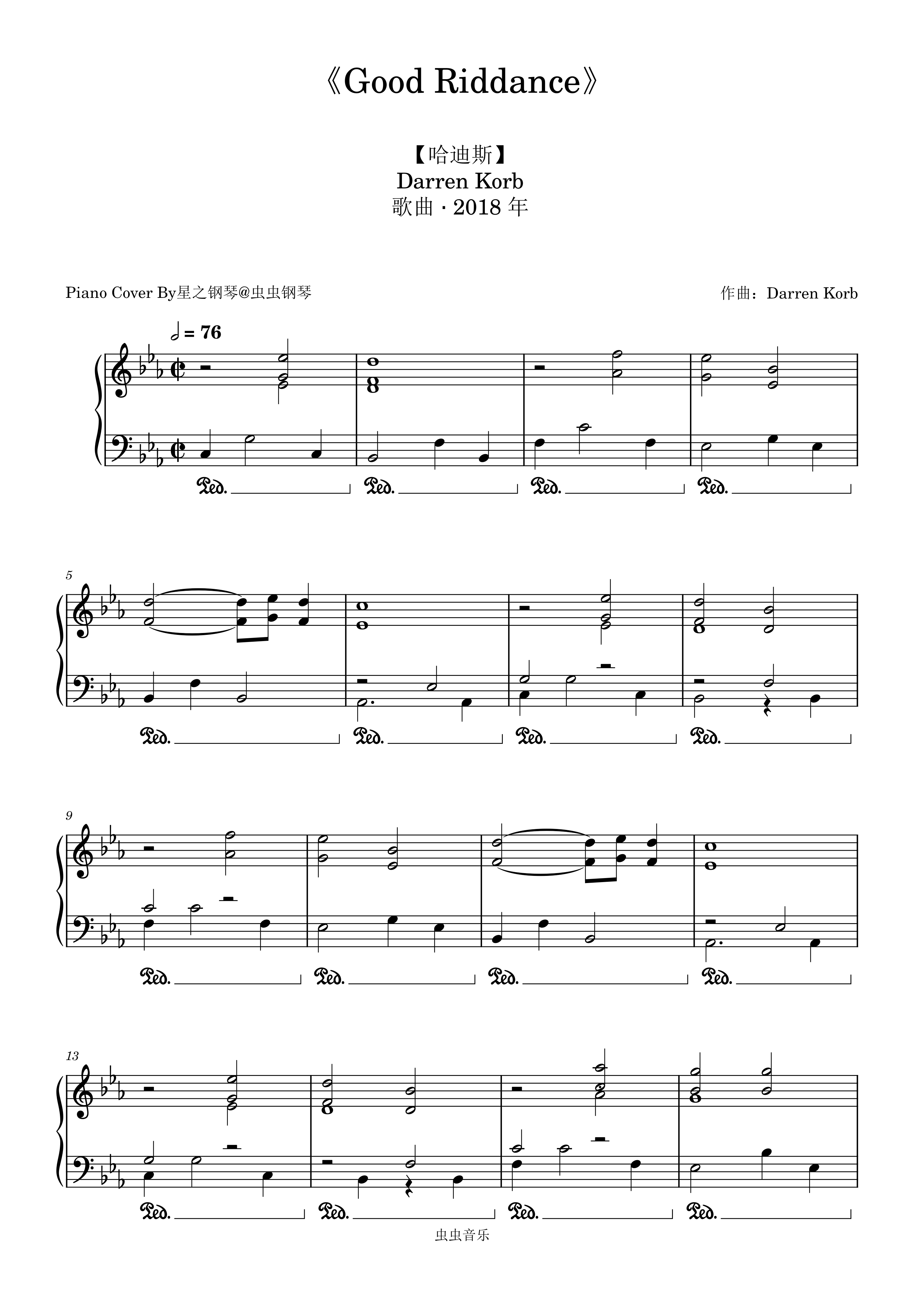 钢琴谱:【哈迪斯】《Good riddance》简单钢琴谱~星之钢琴~