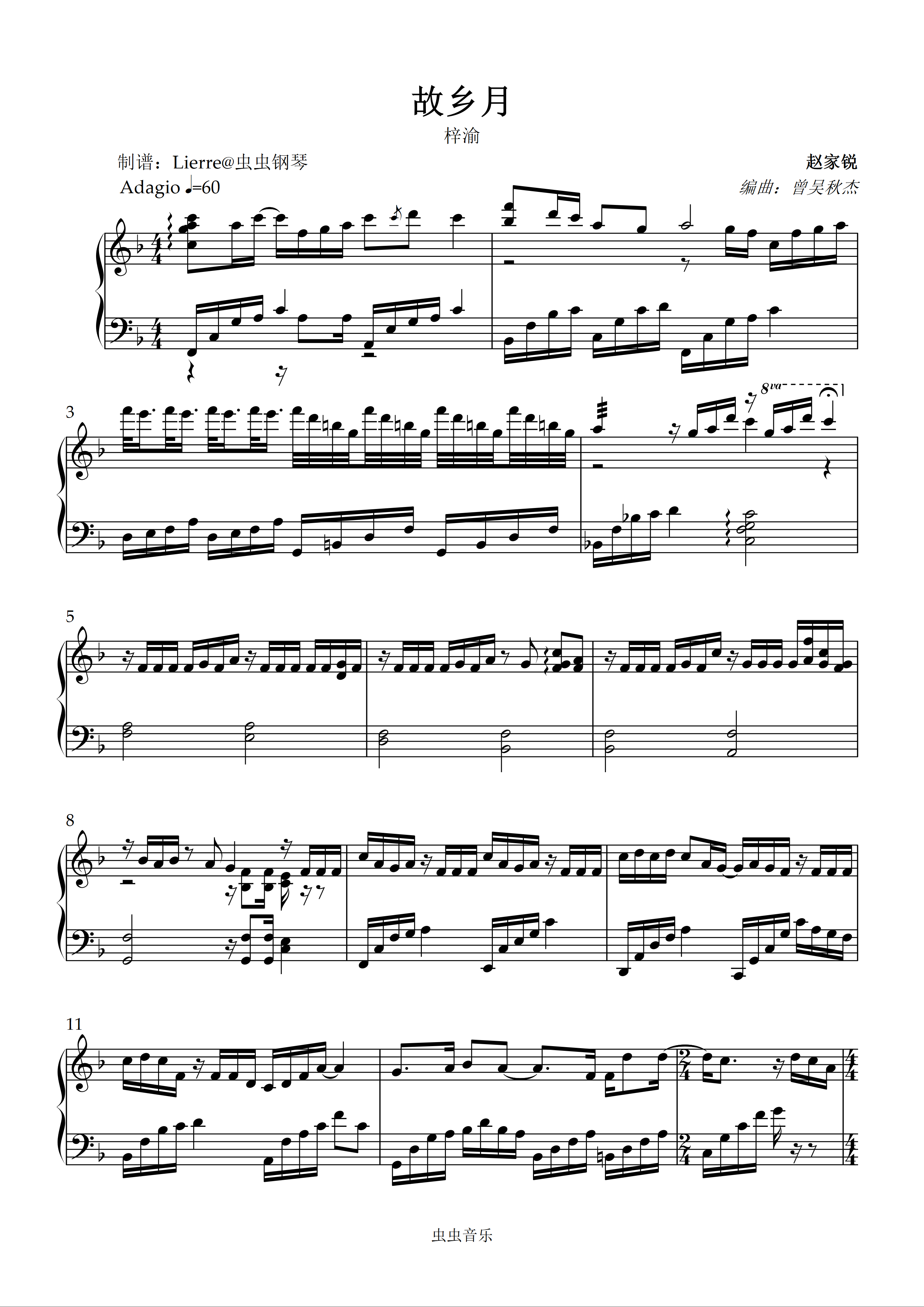 钢琴谱:「故乡月」 梓渝首支国风定制单曲