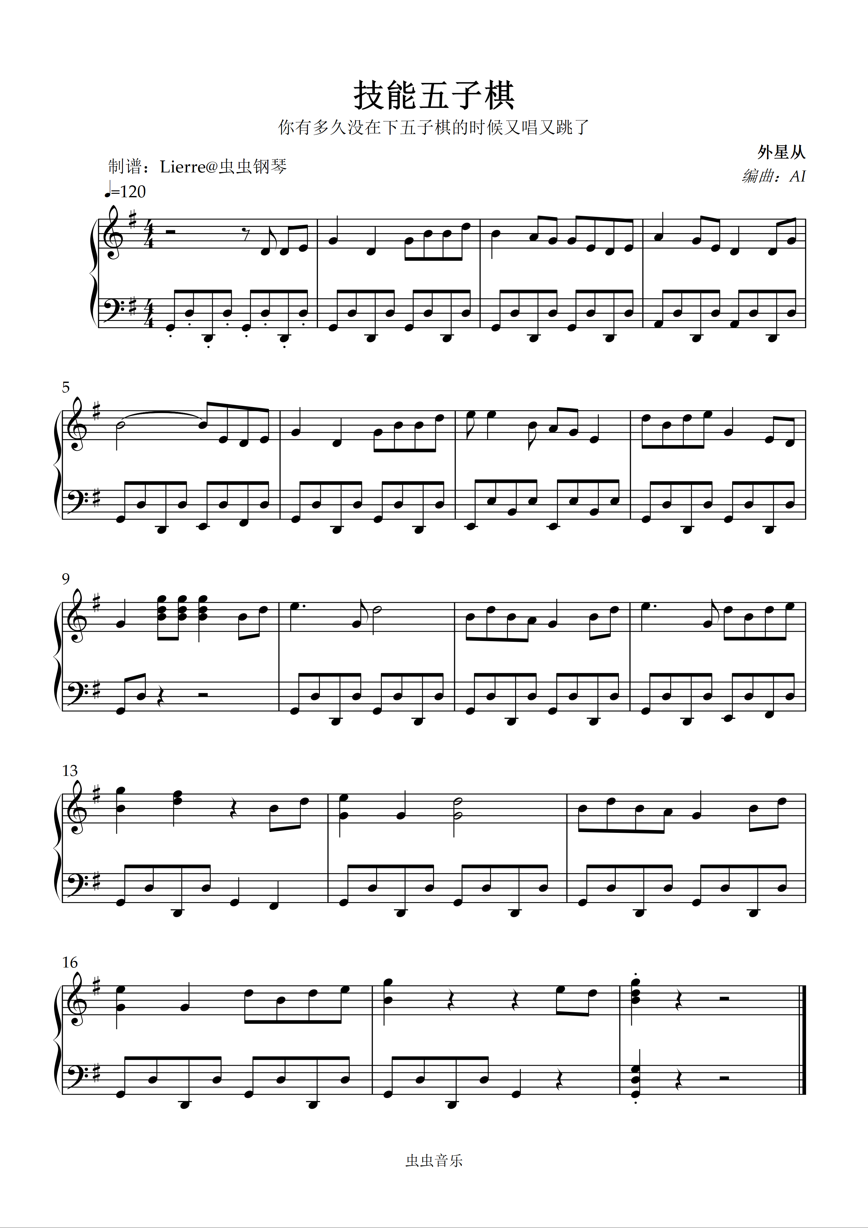 技能五子棋钢琴简谱 数字双手