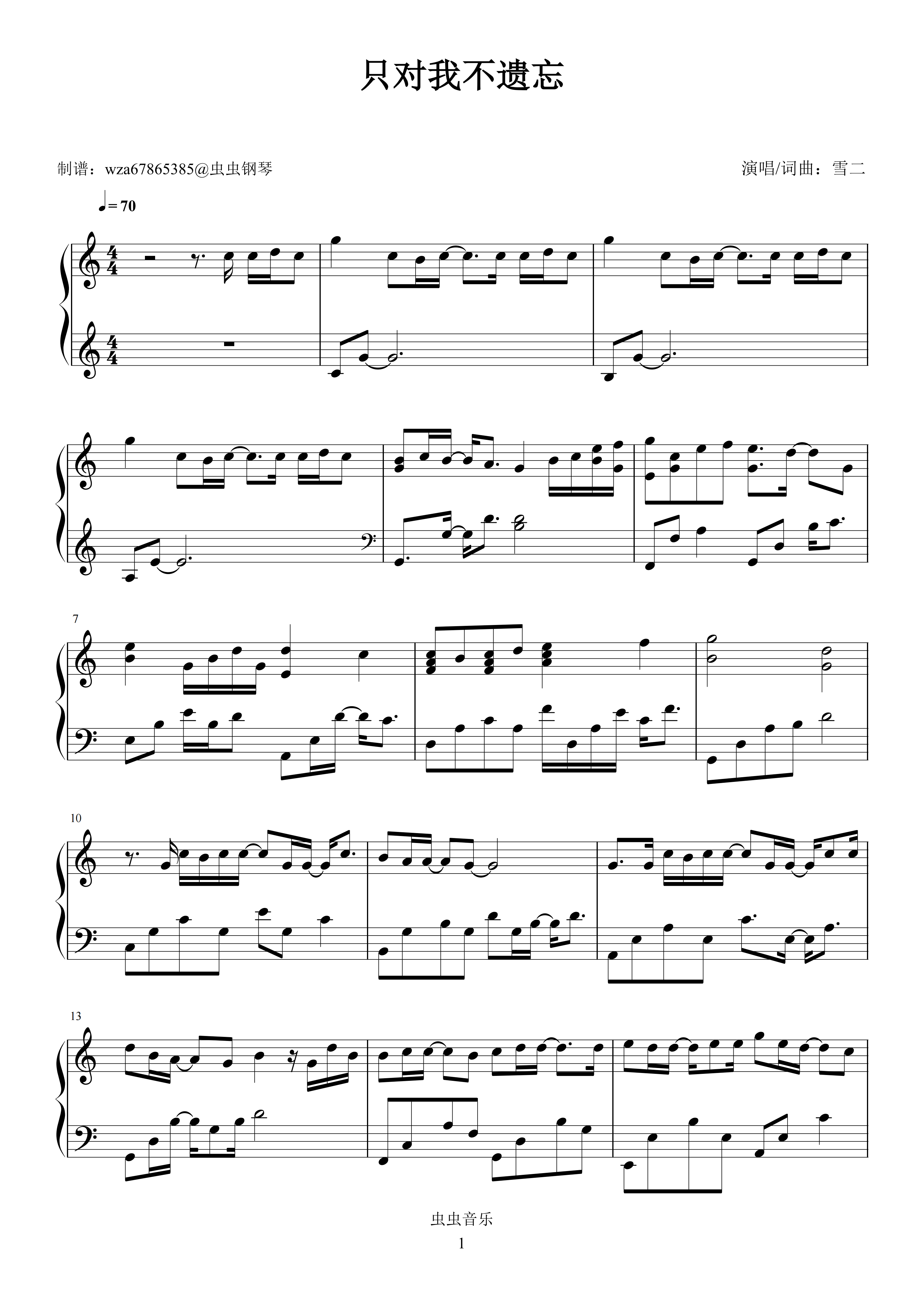 只对我不遗忘钢琴简谱 数字双手 雪二