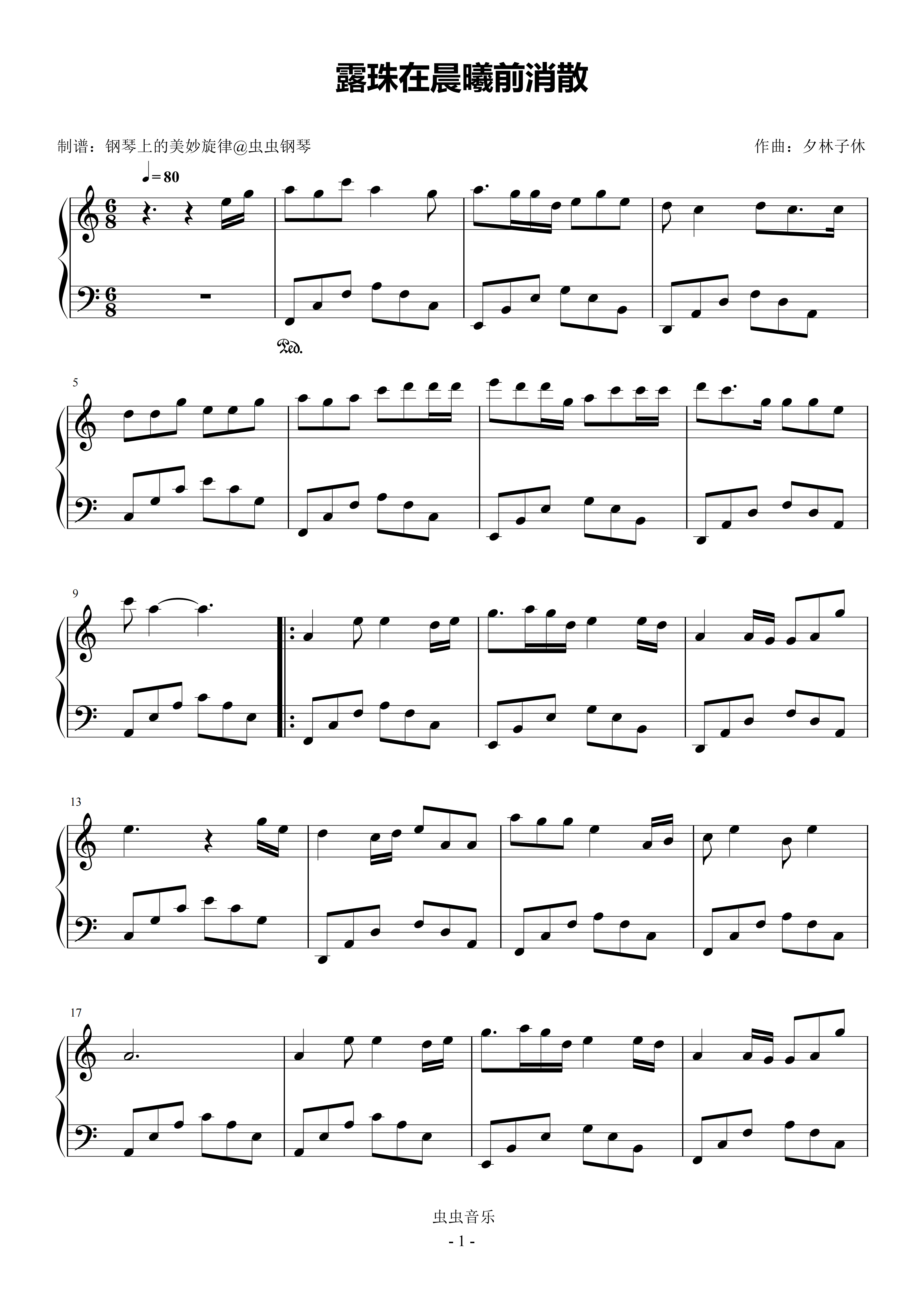 露珠在晨曦前消散钢琴简谱 数字双手